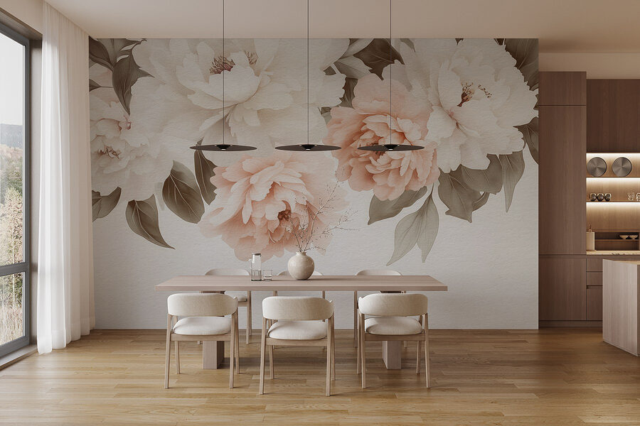 Proměňte každou místnost v klidné zahradní útočiště pomocí této úžasné nástěnné malby se zasněnou skupinou květin a listů. Představte si, že se každé ráno probouzíte do jemného ruměnce pivoněk, jejichž jemné barvy šeptají teplo a pohodu. Tato fototapeta jako by přinesla kousek přírody do interiéru a dodala mu vrstvy kouzla a nádech romantiky. Perfektně se hodí do útulných zákoutí, čtecích koutků nebo i na prázdnou zeď, která si říká o pozornost. Není to jen dekorace; vytváří příjemnou atmosféru, kde si člověk může odpočinout, jako by se uvelebil mezi rozkvetlými okvětními lístky. Kdo by se v takovém krásném prostoru necítil inspirován?