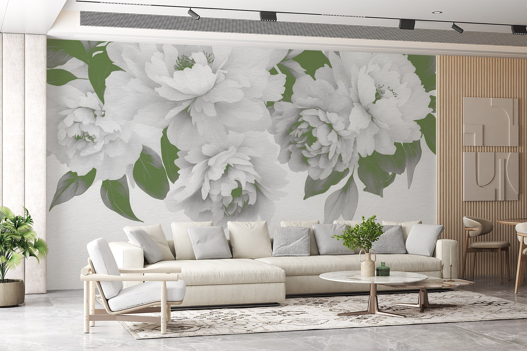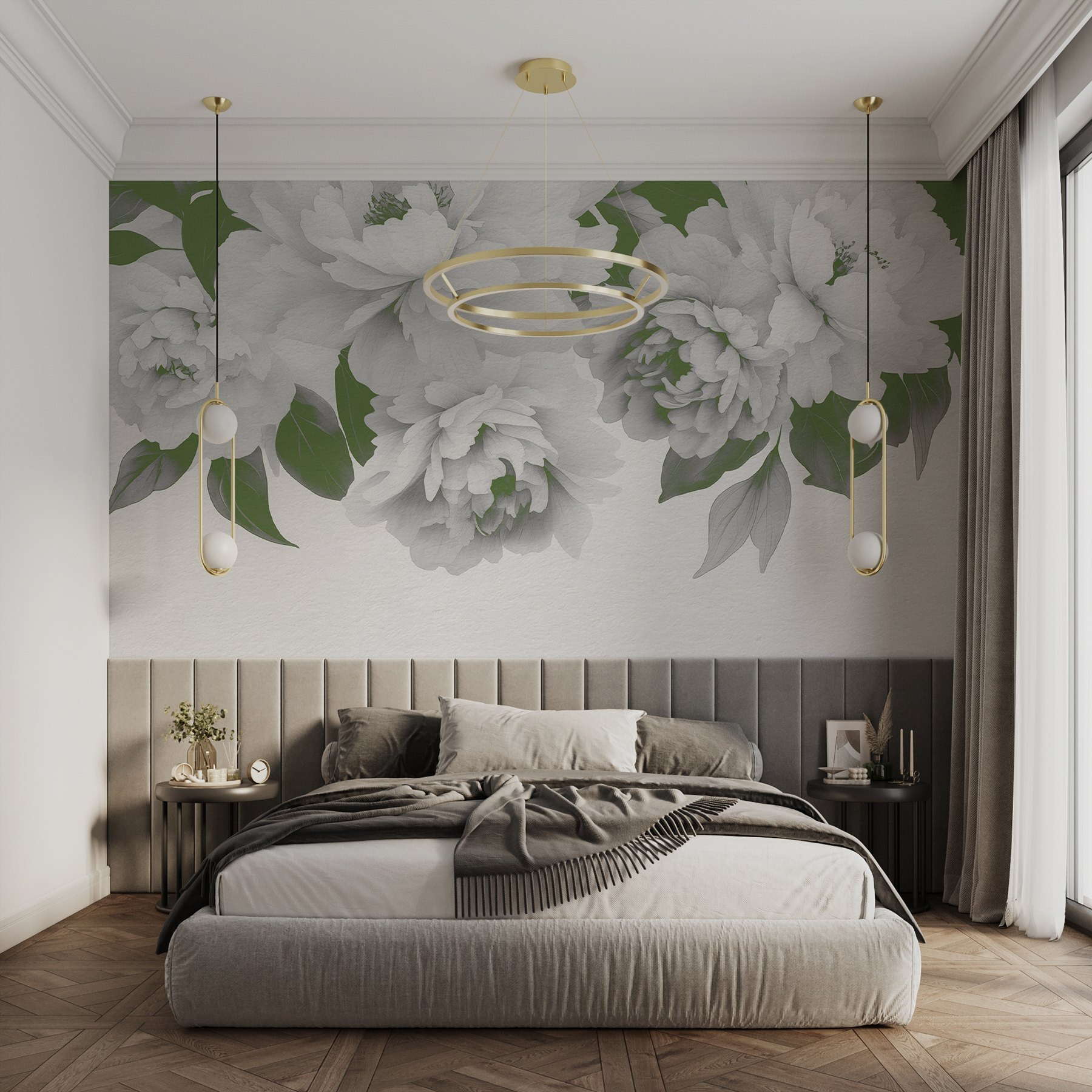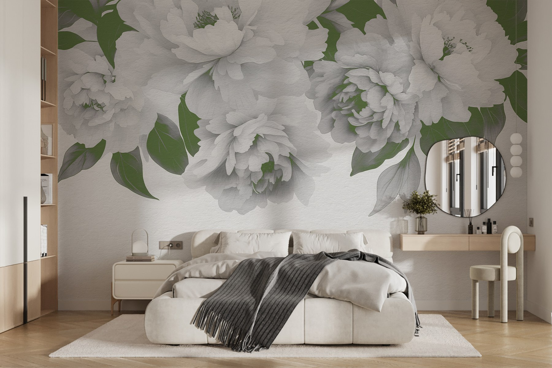 Proměňte jakýkoli prostor v klidnou zahradu pomocí této úžasné nástěnné malby se skupinou elegantních bílých květin a svěžích zelených listů. Představte si, že se probudíte s tímto uklidňujícím pohledem, kde se jednoduchost přírody snoubí s uměleckým vkusem. Je to jako závan čerstvého vzduchu, který do vašeho domova pozve teplo a klid. Tyto květy, které se skvěle hodí do útulného obývacího pokoje nebo klidné ložnice, neuvadnou; prostě každý den přinášejí tu snovou atmosféru. Je to krásný způsob, jak dodat květinám šarm a charakter – není třeba je zalévat! Tak proč se spokojit s obyčejnými stěnami, když vám květinové mistrovské dílo může rozzářit den?