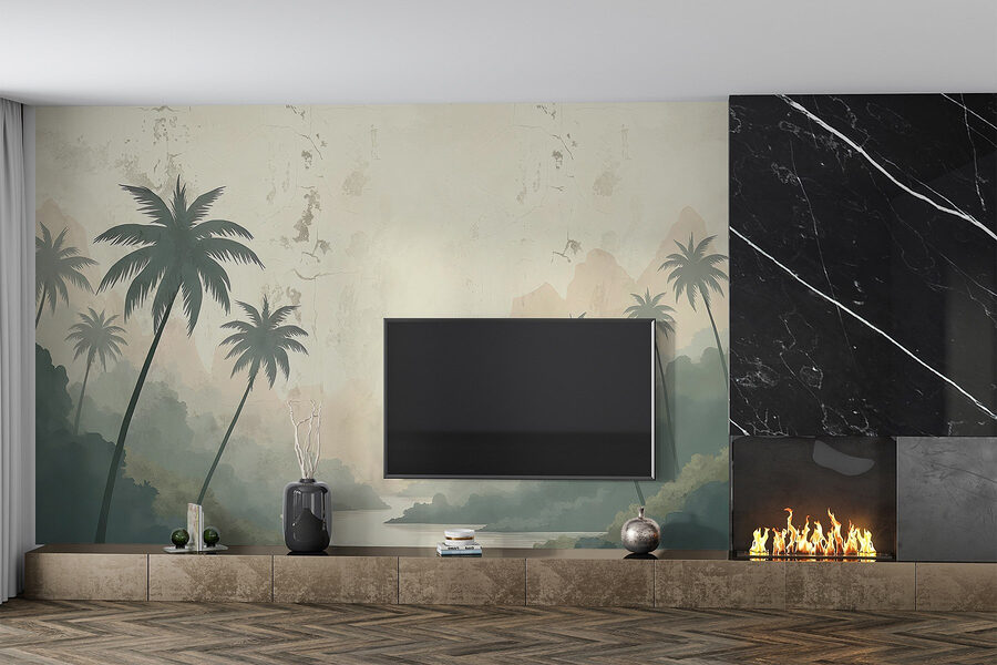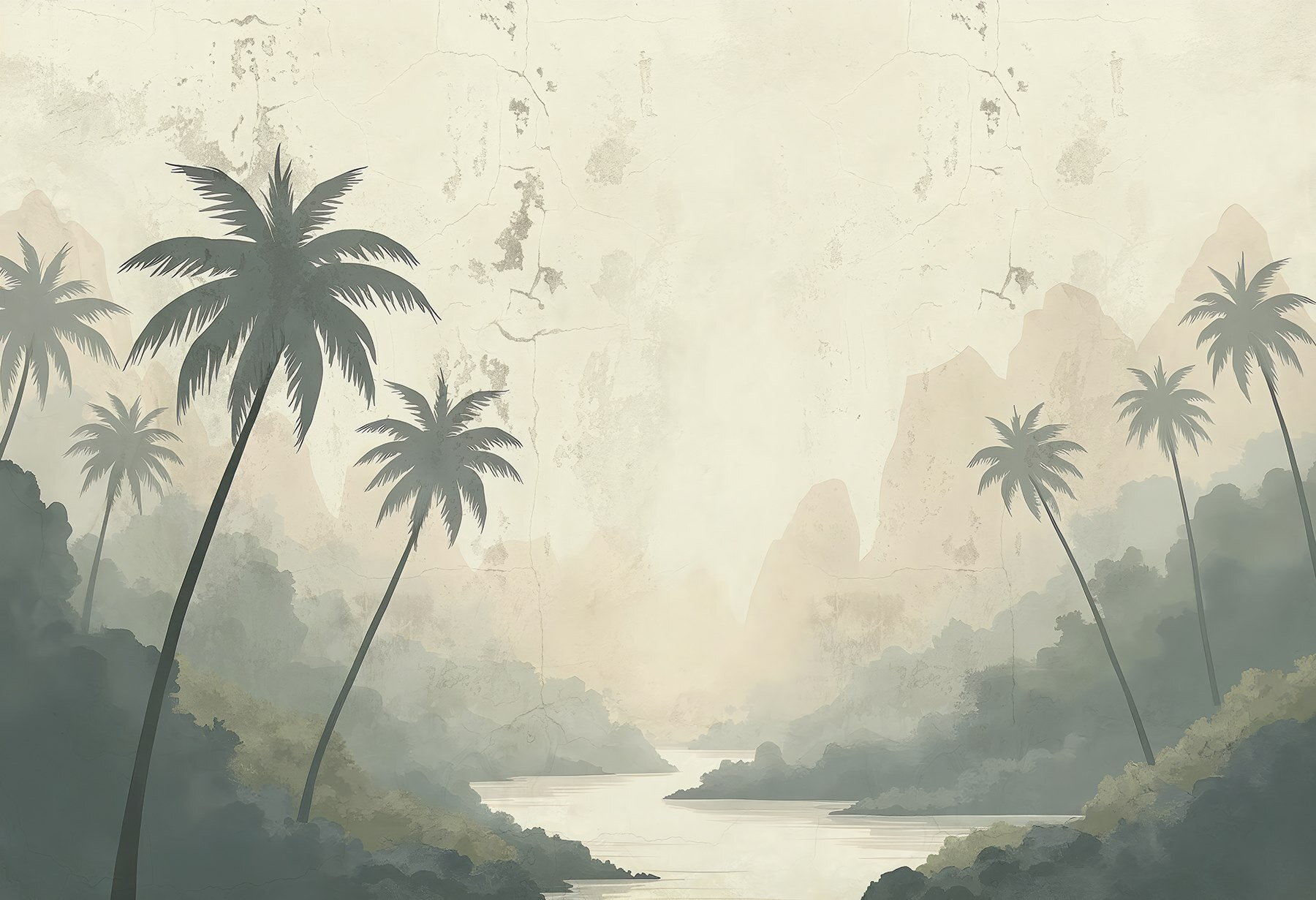 Proměnit pokoj v klidný únik je tak snadné jako tato úžasná nástěnná malba řeky obklopené zasněnými stromy a majestátními horami. Představte si, že se po dlouhém dni vrátíte domů, zaboříte se do pohodlného křesla a budete mít pocit, že jste se přenesli do klidného tropického ráje. Měkké barvy evokují to jemné ranní světlo a šeptají přísliby klidu. Tato nástěnná malba, která se skvěle hodí do útulného zákoutí nebo na zeď, vybízí ke snění o dalekých dobrodružstvích. Kdo by nechtěl mít kousek přírody přímo u sebe doma? Každému prostoru dodá hloubku, charakter a nádech toulek – kousek divočiny na dosah.
