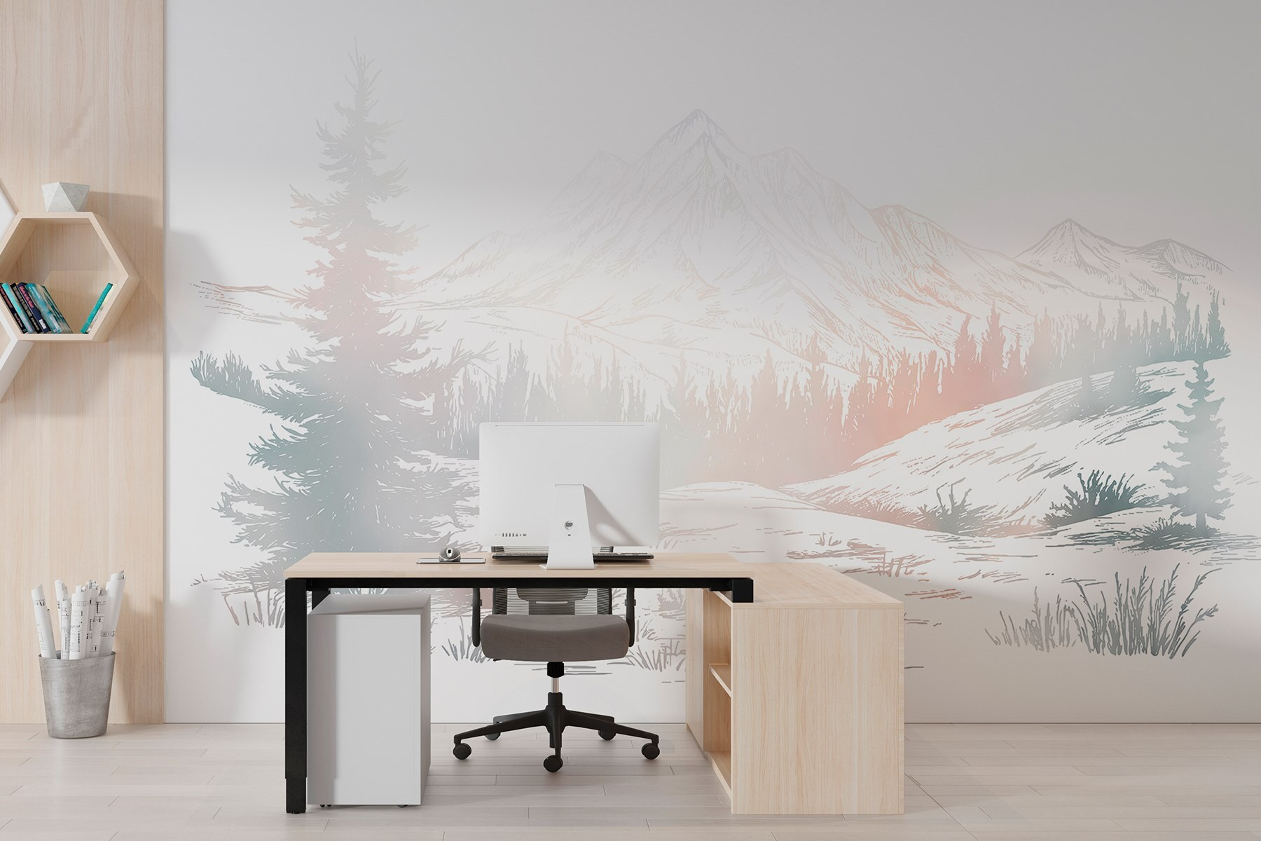 Proměňte jakýkoli prostor v klidné útočiště pomocí této krásné nástěnné malby s jemnou krajinou stromů a hor. Je to jako přenést si kousek přírody do interiéru, aniž byste museli bojovat s hmyzem nebo snášet nepředvídatelné počasí. Představte si, že popíjíte ranní kávu a přitom se díváte na majestátní vrcholky a svěží zeleň – je to čiré blaho! Tato nástěnná malba není jen dekorací, je to únik. Skvěle se hodí do útulného čtecího koutku nebo do uklidňující atmosféry ložnice. Navíc je skvělým pozadím pro selfie typu “právě jsem se probudil”. Milovníci přírody se radují!