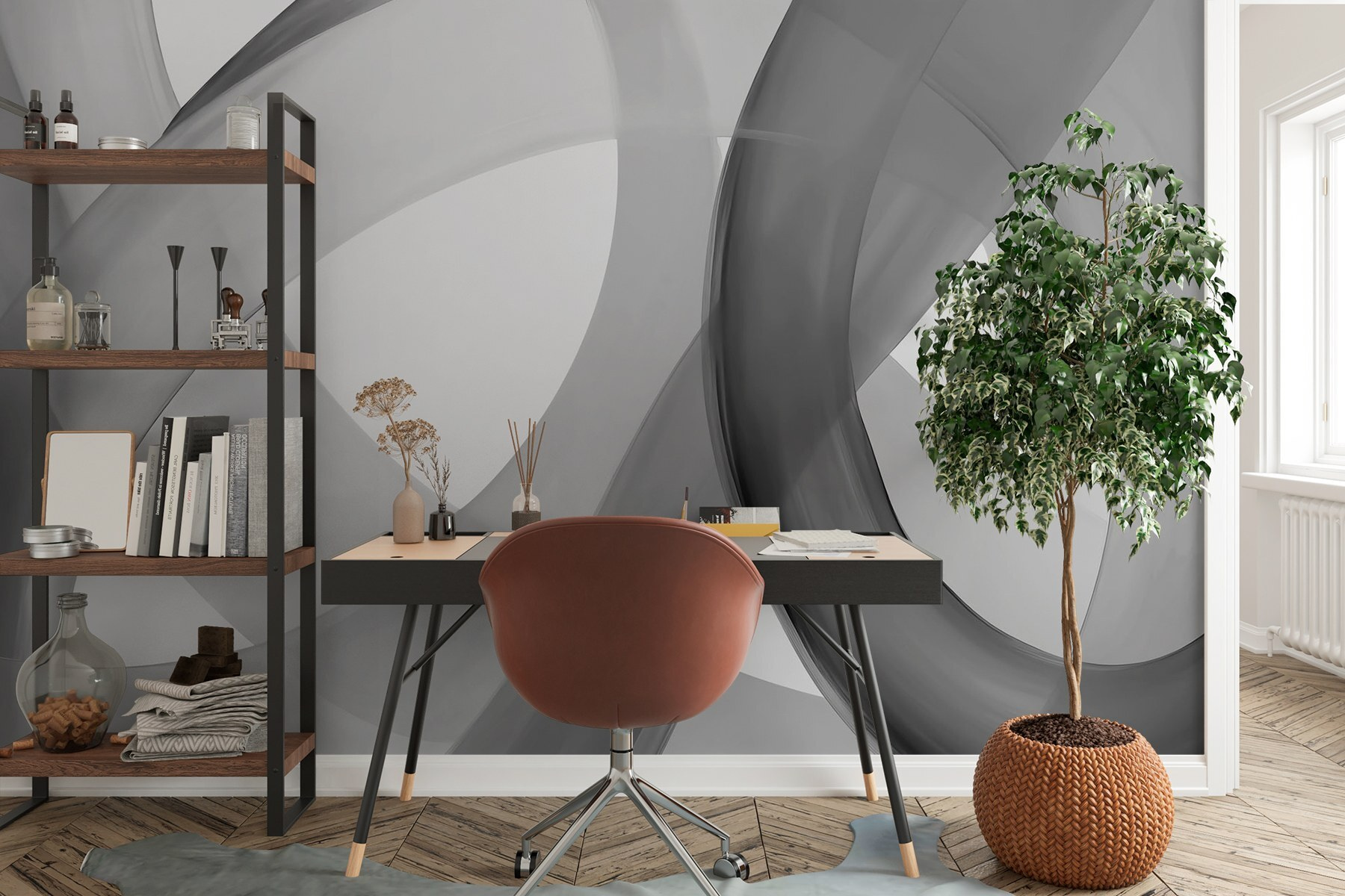 Proměňte každou místnost ve stylové útočiště s nástěnnou malbou “Šedé a bílé víry”. Tyto jemné vlny šedé a bílé barvy spolu víří v tanci, který působí uklidňujícím a zároveň sofistikovaným dojmem – ideální do koutku, kde se lidé scházejí na kus řeči. Představte si, že popíjíte kávu obklopeni touto klidnou kulisou a máte pocit, že jste vstoupili do módní kavárny nebo elegantní umělecké galerie. Díky jemným tónům je univerzální; nějakým způsobem dodává šmrnc, aniž by byl přehnaný. Ať už se nachází v obývacím pokoji nebo v útulném čtecím koutku, vybízí k pocitu plynulosti a kreativity. Je to jako přinést kousek abstraktního umění přímo na stěnu – prostě jemné prohlášení, které našeptává eleganci. Víry této nástěnné malby jistě podnítí konverzaci a mohou dokonce inspirovat k dalšímu velkému nápadu při přátelském večeru s deskovými hrami. Čeká vás nádherná směs stylu a klidu!