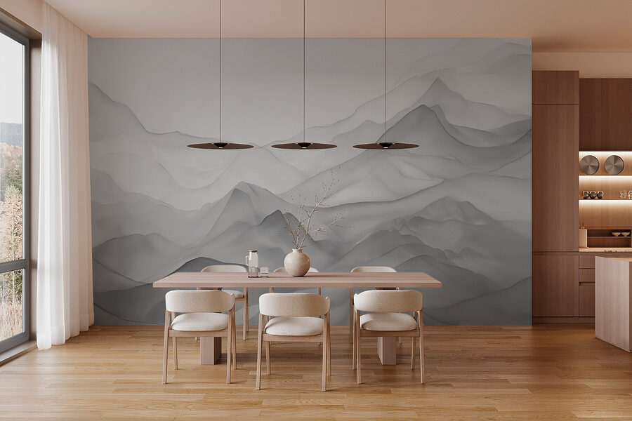 Proměňte svůj prostor pomocí této nástěnné malby, která v sobě skrývá eleganci a dobrodružství. Představte si, že vejdete do místnosti a máte pocit, že jste vstoupili do klidného horského pásma, kde se jemně prolínají šedé a bílé odstíny. Je ideální pro vytvoření pohodové atmosféry, ať už jde o útočiště teenagerů nebo útulný čtecí koutek. Díky jemným přechodům působí dynamicky a zároveň uklidňujícím dojmem, trochu jako tichá ranní mlha nad vzdálenými vrcholky. Představte si to: v jednu chvíli zíráte na zeď a vzápětí se ztrácíte ve snění o vzdálených místech. Prostě to vybízí k relaxaci, že? Malý kousek přírody bez výletu!