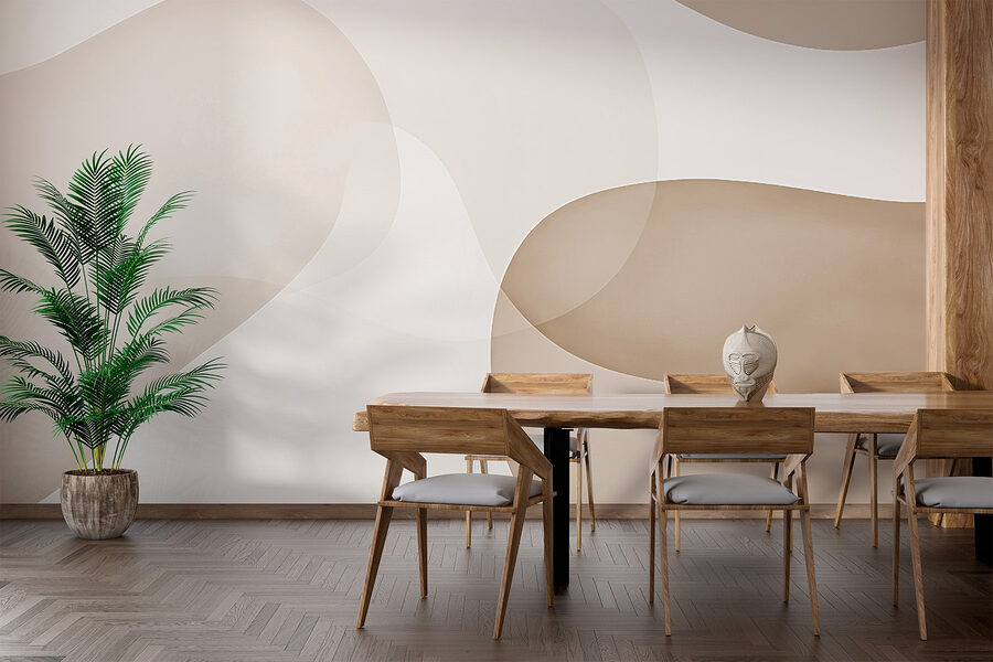 Proměna prostoru může být stejně snadná jako přehození útulného svetru a tato nástěnná malba je přesně taková! S teplým bílým a měkkým hnědým pozadím tančí místností jako jemný vánek. Představte si uklidňující únik přímo ve svém obývacím pokoji nebo kanceláři – jde o tyto uvolněné vibrace.