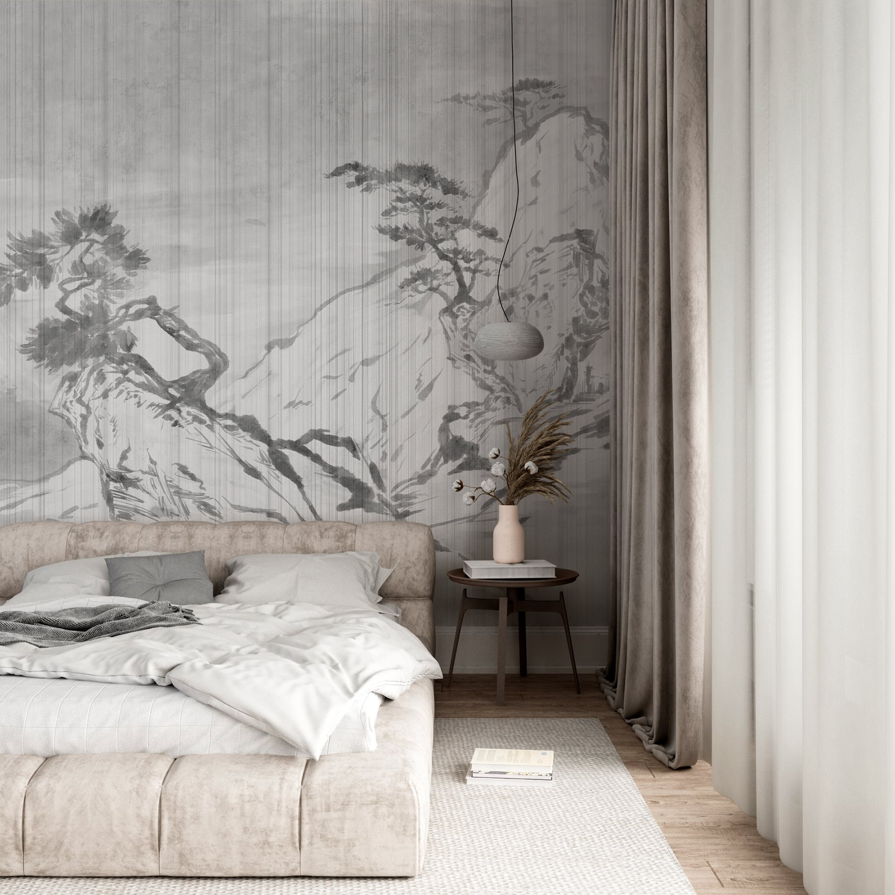 Ponořte se do klidného úniku s touto úžasnou nástěnnou malbou s půvabným stromem usazeným na drsné skále. Představte si, že přímo z obývacího pokoje vstoupíte do klidné krajiny – je to jako přenést si přírodu do interiéru, aniž byste se museli obtěžovat. Jemná práce štětce zachycuje podstatu klidné horské scenérie a nabízí vizuální úlevu pokaždé, když se někdo prochází kolem. Ideální pro ty, kteří ocení trochu klidu ve svém chaosu! Ať už jde o povídání s přáteli nebo útulné čtení, tato nástěnná malba promění prostor v malé útočiště. Je to umění, které vám prostě udělá dobře – rozhodně je to podnět ke konverzaci!