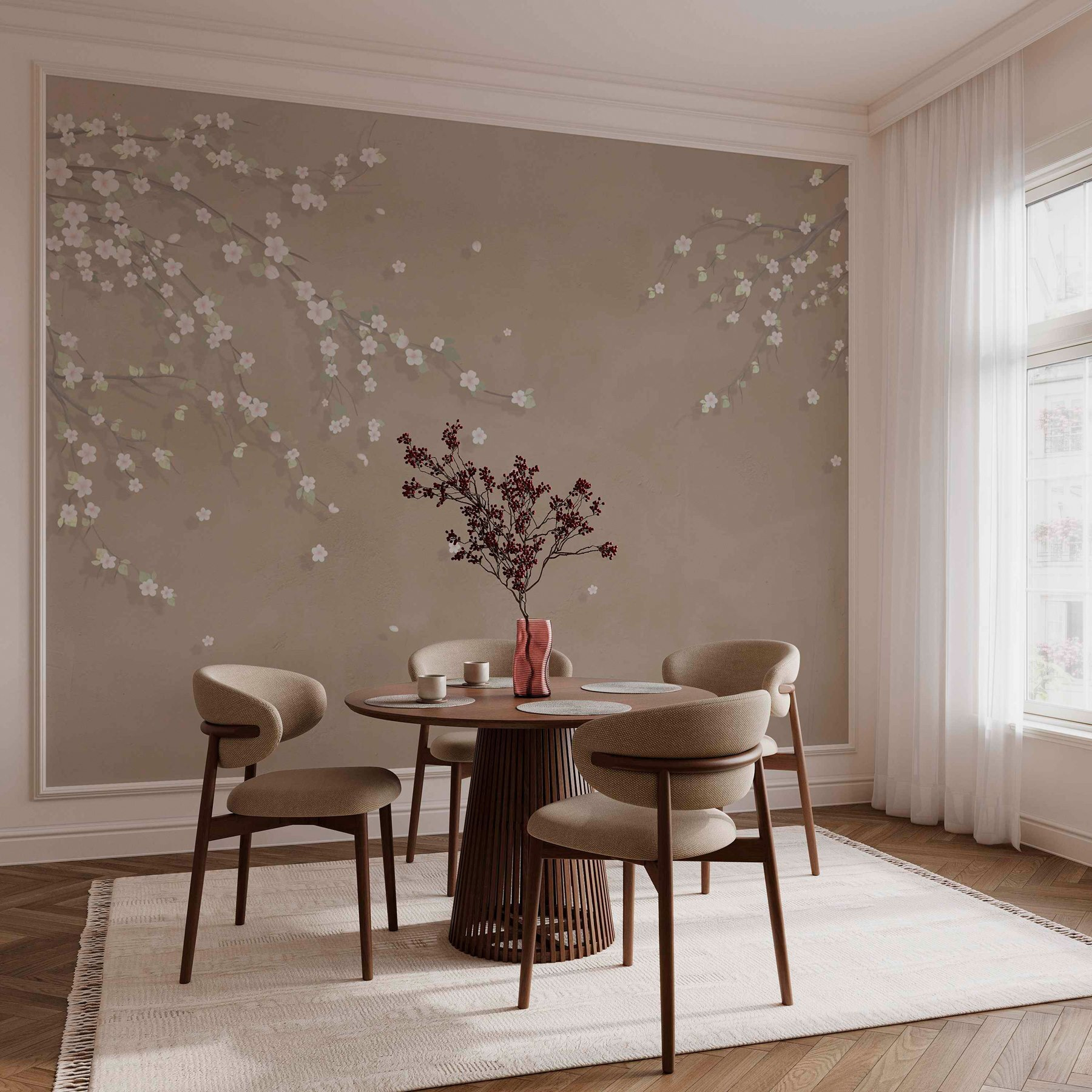 Proměňte jakýkoli prostor pomocí této okouzlující nástěnné malby s bílými květy na větvích. Působí jako jemný jarní vánek a přináší přírodu přímo do vašeho domova. Představte si, že se probouzíte a na stěně vám tančí jemné květy, které rozjasní i ty nejchmurnější dny. Díky těmto jemným okvětním lístkům se téměř zdá, že jste stále venku a popíjíte kávu na prosluněné terase. Tato nástěnná malba, která je ideální pro útulný obývací pokoj nebo klidné útočiště v ložnici, našeptává klid. Je to jako mít v interiéru kousek přírody – krásný, uklidňující a neuvěřitelně lákavý. Vaše stěny brzy rozkvetou!
