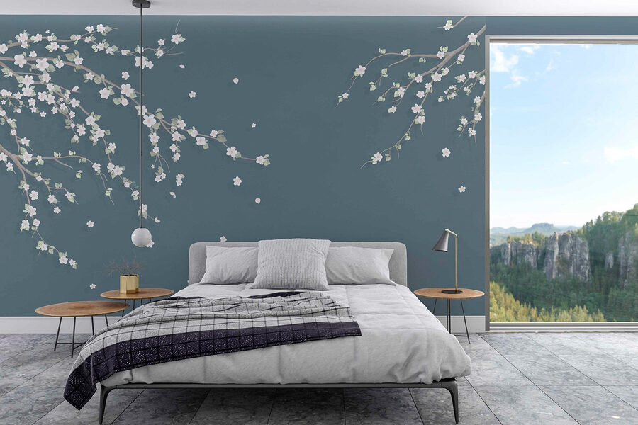 Proměňte svůj prostor pomocí této okouzlující nástěnné malby “Větev stromu s bílými květy”. Přináší šepot klidu a elegance jako útulná procházka japonskou zahradou. Představte si, že se probouzíte a po stěně tančí jemné květy, které přinášejí teplo bez bzučení včel. Uklidňující barvy nabízejí dokonalé pozadí pro útulné čtecí koutky nebo živé obývací pokoje. Představte si, jak se scházíte s přáteli, smějete se a popíjíte čaj, zatímco jste obklopeni krásou přírody – není k tomu potřeba žádný zelený palec. Trochu přírody, hodně šarmu – jen kapka rozmarnosti, která pozvedne váš každodenní život!