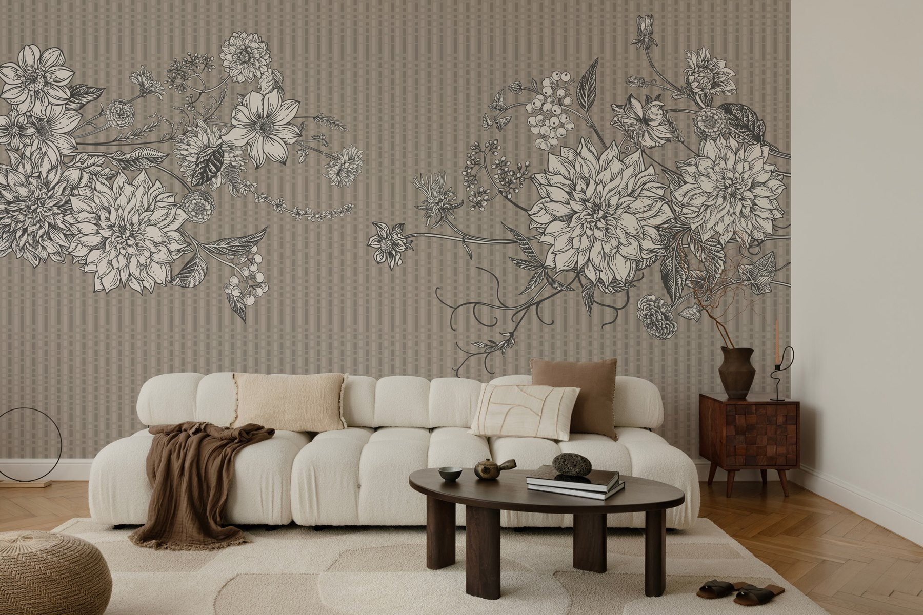 Proměňte každou místnost v útulné útočiště pomocí této úžasné nástěnné malby – Květinová elegance v harmonickém designu. Představte si, jak se vám přímo před očima rozvíjejí tyto nádherně načrtnuté květiny, v nichž se mísí jemné zemité tóny se složitými detaily. Je to jako přenést zahradu do interiéru, bez kýchání. Představte si, že se každý den probouzíte s tímto půvabným květem, který na vás pokukuje a okamžitě vám zvedne náladu. Ať už se jedná o klidný čtecí koutek, nebo o nepohodlnou stěnu, kterou všichni ignorují, tato nástěnná malba vám ukradne celou show. Kdo by řekl, že květinová výzdoba může být tak osvěžující?