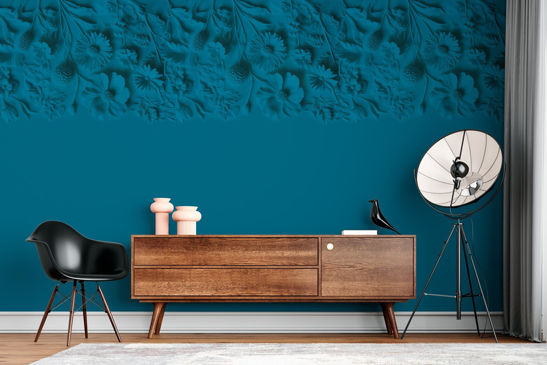 Proměňte prostor pomocí této úžasné nástěnné malby se zářivě modrým pozadím zdobeným květinami a listy. Je to jako přenést kousek přírody do interiéru bez nutnosti údržby – nebo včel! Představte si, že ráno popíjíte kávu a díváte se přitom na tento svěží design; prostě vám zvedne náladu. Skvěle se hodí do obývacích pokojů nebo útulných zákoutí a vytváří příjemnou atmosféru, která okamžitě přiměje přátele komentovat váš elegantní styl. Malý nádech rozmarnosti smíšený s půvabem přírody, to vše je o tom, abyste se doma cítili tak akorát. Dodejte svým stěnám trochu osobnosti!