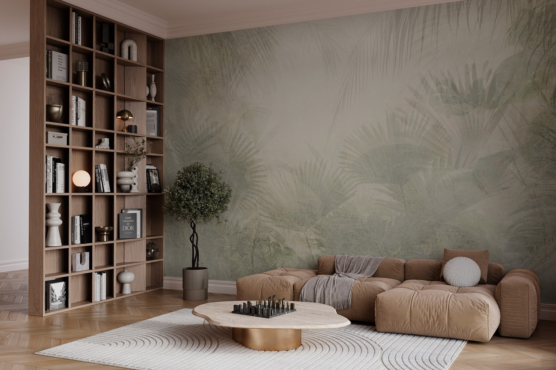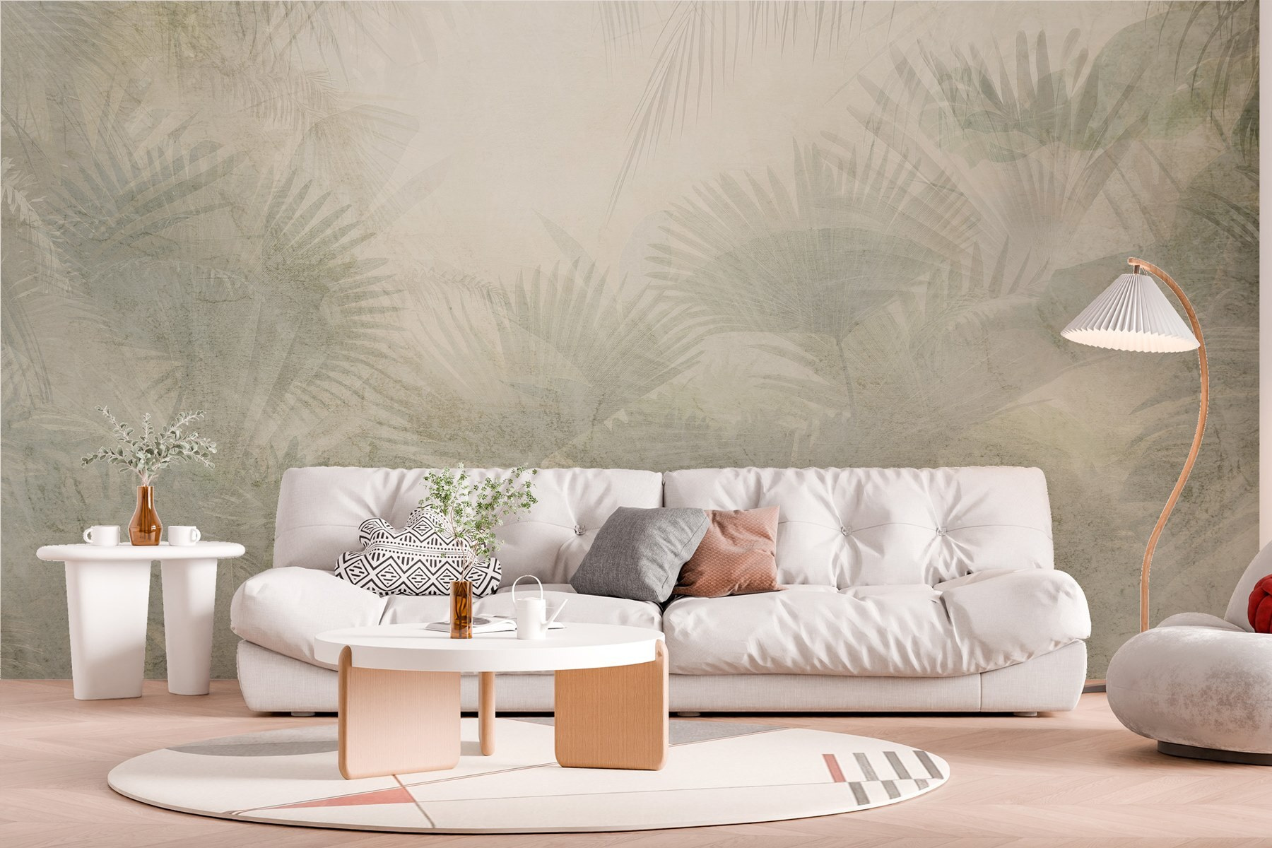 Proměňte jakýkoli prostor v klidné místo k odpočinku pomocí této krásné nástěnné malby s jemnými palmovými listy na jemném bílém pozadí. Představte si, že při každém vstupu do místnosti vstoupíte do uklidňující oázy. Je to malý kousek tropů přímo u vás doma – žádný pas není potřeba! Ideální do útulného čtecího koutku nebo živého obývacího pokoje. Jen si představte lenošení s vychlazeným nápojem, obklopeni uklidňujícími vibracemi přírody. Jemné detaily vytvářejí jemnou hloubku, díky níž působí jako závan čerstvého vzduchu. Je to jako hřejivé objetí od matky přírody!