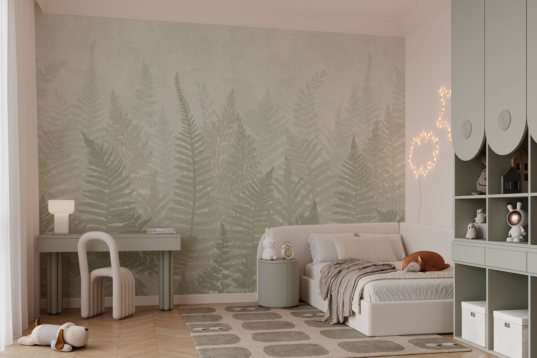 Představte si, že vstoupíte do klidného lesa, kde ranní mlha tančí kolem svěžích listů kapradí. Tato nástěnná malba dokonale zachycuje tuto snovou atmosféru a promění každou stěnu v klidné útočiště. Jemná zeleň se hladce prolíná s jemnými mlžnými vrstvami a zve do vašeho prostoru pocit klidu. Je to jako přenést si kus přírody do interiéru, aniž byste potřebovali zelený palec! Představte si útulné večery strávené popíjením čaje, obklopeni touto klidnou scenérií. Ať už v obývacím pokoji nebo v útulném čtecím koutku, určitě vyvolá úsměv a trochu snění. Kdo by si nechtěl odpočinout v malém kousku ráje?