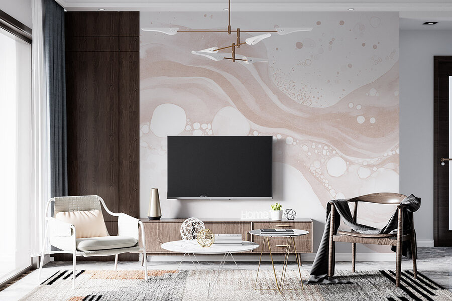 Proměňte nudný prostor v klidné útočiště pomocí této úžasné nástěnné malby “Bílá a hnědá tekutina s bílými kruhy a tečkami”. Představte si, že se probouzíte s jemnými vířivými odstíny, které tančí po stěně a vytvářejí jemnou atmosféru vybízející k relaxaci. Jedinečné tečky a tekuté tvary napodobují stříkající kreativitu – ideální pro útulný obývací pokoj nebo zasněnou ložnici.