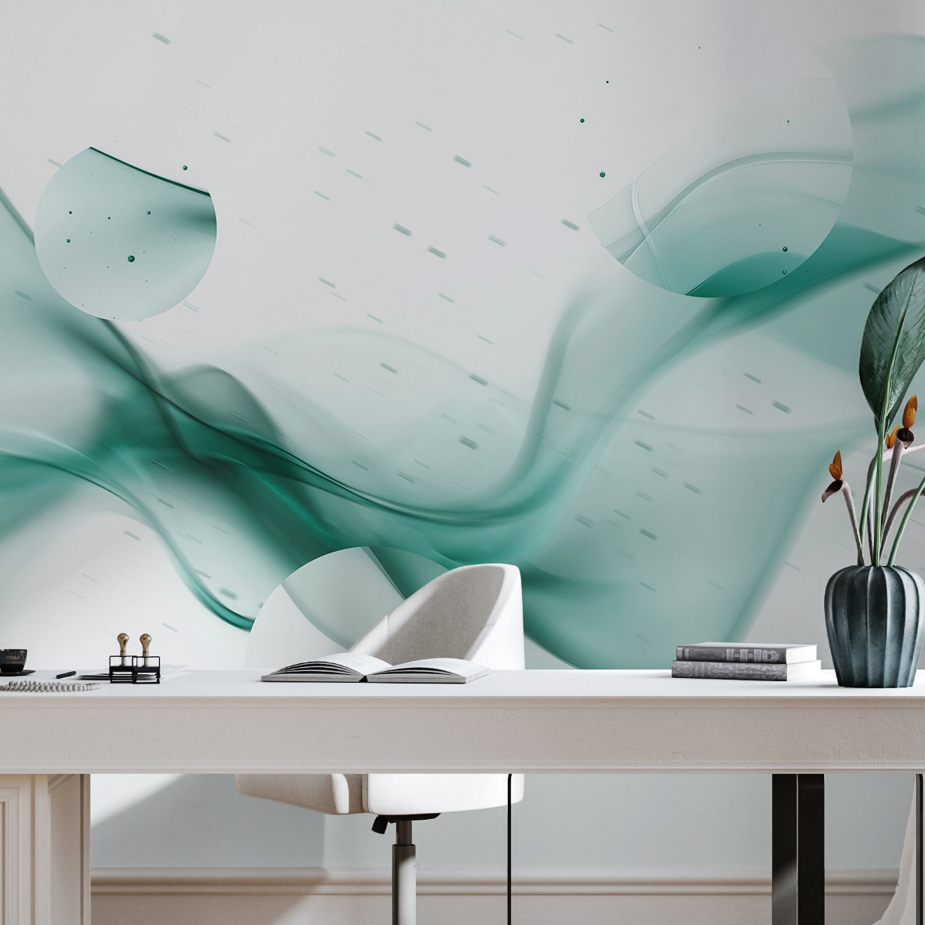 Proměňte svůj prostor pomocí okouzlující nástěnné malby “Zelený kouř a kruhy”. Půvabně se vznáší na vaší stěně a mísí jemné chuchvalce zelené barvy s hravými kruhovými prvky. Představte si, že si odpočinete v místnosti, která bude působit jako zasněný únik – ideální pro útulné čtecí koutky nebo živá setkání. Tento design nejen zdobí, ale také navozuje atmosféru, která říká: “Přijďte si odpočinout, popít čaj a popovídat si o smyslu života.”. Navíc je to skvělý podnět ke konverzaci – lidé se nechají přitahovat plynulými tvary, přičemž každý pohled odhalí něco nového. Nechte své stěny vyprávět příběh!