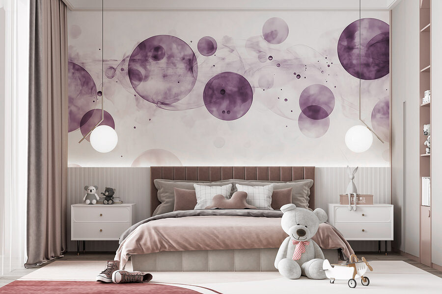 Proměna místnosti? Tato nástěnná malba s vířícími fialovými kruhy a snovým kouřem na ostrém bílém pozadí dodává místnosti nádech rozmarnosti, který přímo vybízí ke snění. Představte si, že vejdete do prostoru, kde stěny jako by tančily barvami, a i ty nejvšednější okamžiky se tak stanou výjimečnými. Přátelé se budou procházet dovnitř, dělat dvojí pohled a ptát se, kde se tu vzalo to kouzlo. Je ideální pro vytvoření pohodové atmosféry v obývacím pokoji nebo přílivu inspirace v kreativním koutku. Nechte tyto kruhy mluvit; jsou jemnou připomínkou toho, že umění může být hravé, stejně jako život.