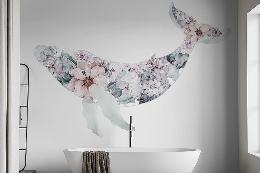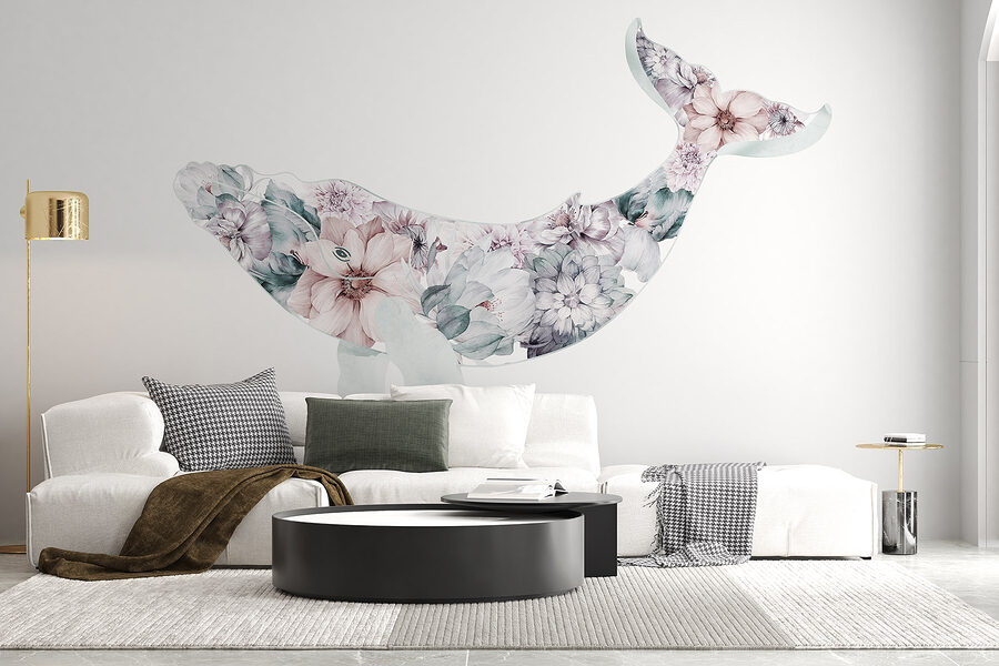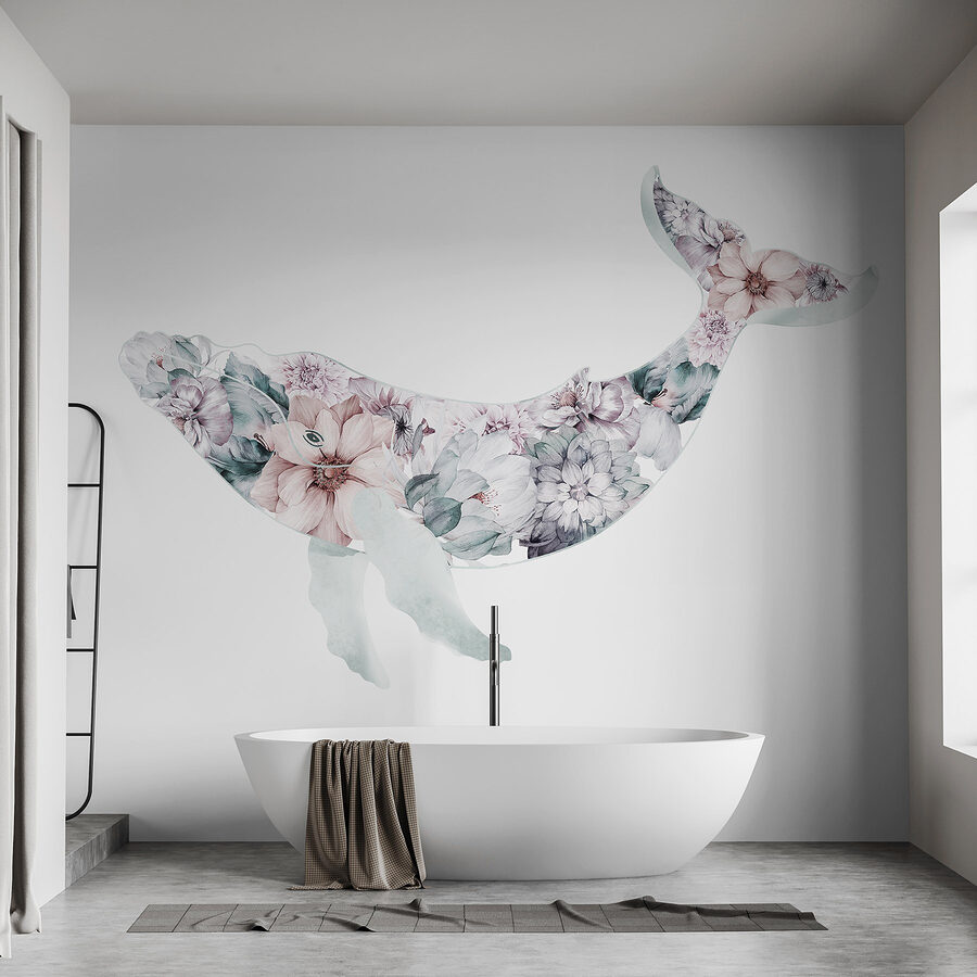 Proměňte svůj prostor pomocí této okouzlující nástěnné malby velryby, která je nádhernou směsicí oceánských vibrací a květinového kouzla. Představte si ji: mohutná, klidná velryba ladně klouže zahradou plnou jemných okvětních lístků a svěžích listů. Je to jako přenést dotek mořského pobřeží přímo do vašeho obývacího pokoje, kde každý pohled působí jako závan čerstvého mořského vzduchu. Tato nástěnná malba nejen zdobí, ale vypráví příběh o poklidných dobrodružstvích a snových útěcích. Je ideální do každé místnosti, která potřebuje trochu kouzla, a díky ní si budete připadat, jako byste se plavili v nadčasovém oceánu klidu. Tento kousek je ideální pro vytvoření útulného čtecího koutku nebo klidného útočiště v ložnici a může ve vás vyvolat sny o oceánských odyseách pokaždé, když půjdete kolem. Pociťte, jak vaše stěny omývají jemné vlny!