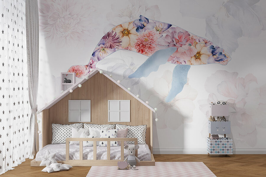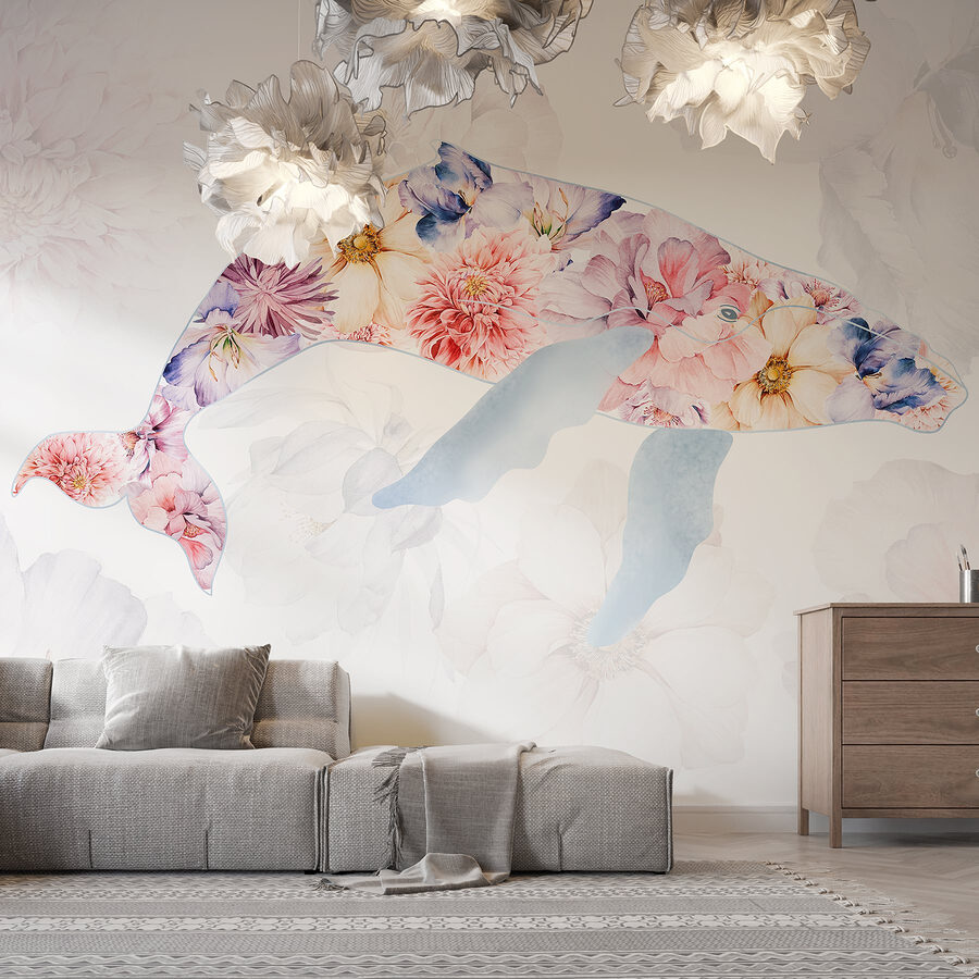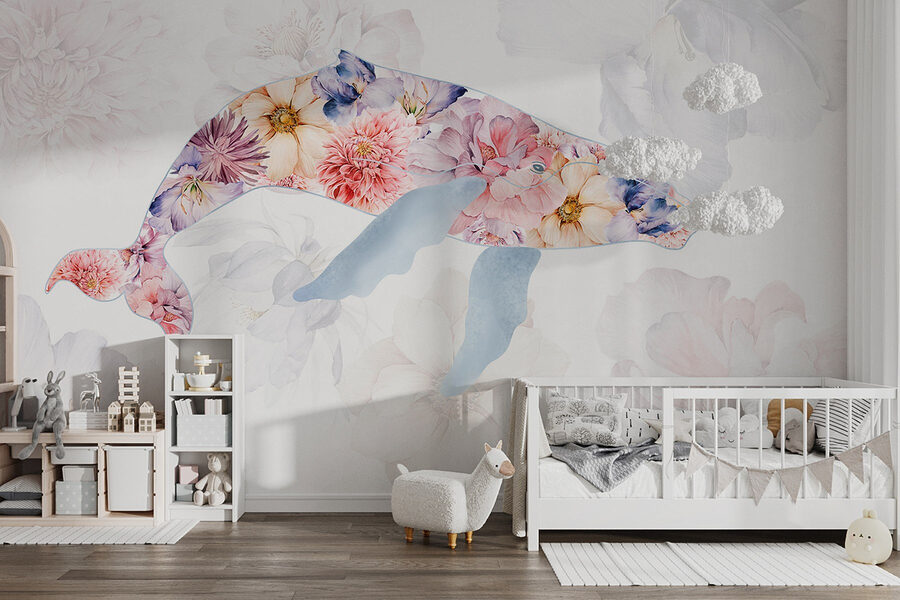 Ponořte se do světa, kde se kouzlo oceánu snoubí s květinovou krásou, díky této úžasné nástěnné malbě. Představte si delfína hravě potřísněného živými květinami, které jako by tančily po stěnách. Je to jako mít tajnou zahradu pod vlnami – kdo by řekl, že mořské panny mají tak dobrý vkus na výzdobu? Tato nástěnná malba navozuje pocit klidu, díky němuž se každý pokoj bude cítit jako útulné přímořské útočiště. Představte si, že si za deštivého dne lebedíte, popíjíte čaj, díváte se na tento umělecký kousek a cítíte, jak vás omývají jemné vlny. Není to jen nástěnná malba, je to mini dovolená pro vaše stěny!