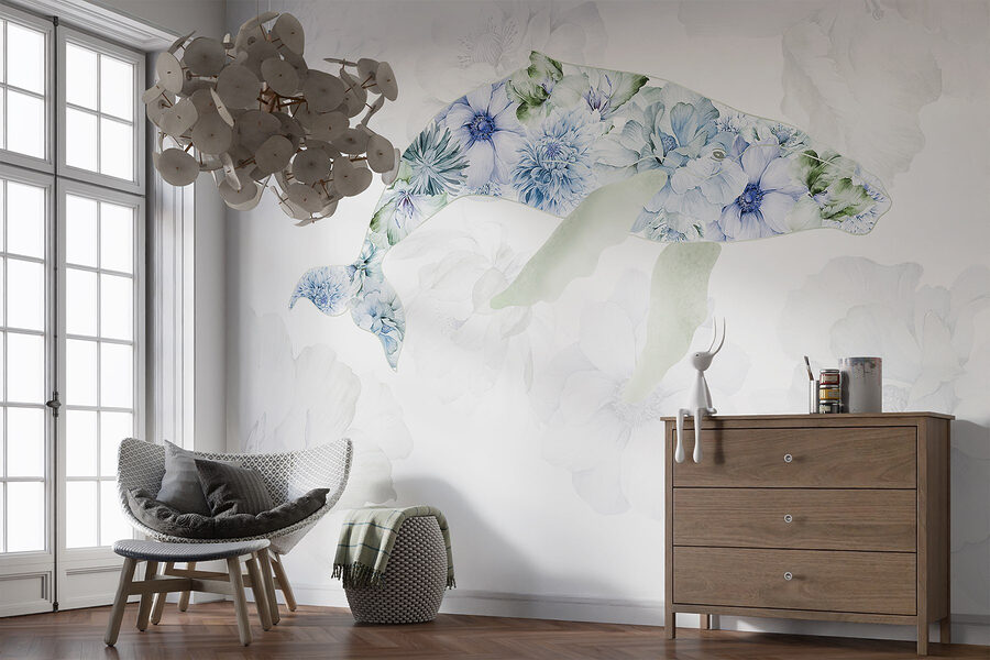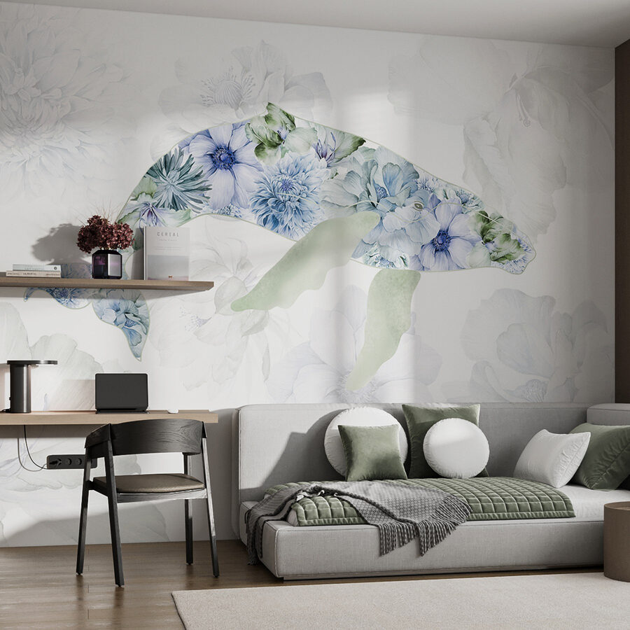 Proměňte svůj prostor pomocí této okouzlující nástěnné malby s velrybou, která se hemží hravými květinami. Představte si, že vstoupíte do místnosti a okamžitě pocítíte klid moře a rozmarnost zahrady. Jemné odstíny a křehké okvětní lístky vybízejí k jemné, klidné atmosféře, která je ideální pro útulný čtecí koutek nebo i hravý dětský pokoj. Je to jako mít kousek přírody přímo na zdi, zachycující radost ze života v oceánu a květinovou krásu. Jen si představte, jak ho přátelé obdivují a ptají se, kde jste takový skvost našli. Ponořte se do toho a nechte nástěnnou malbu vdechnout vašim stěnám život!