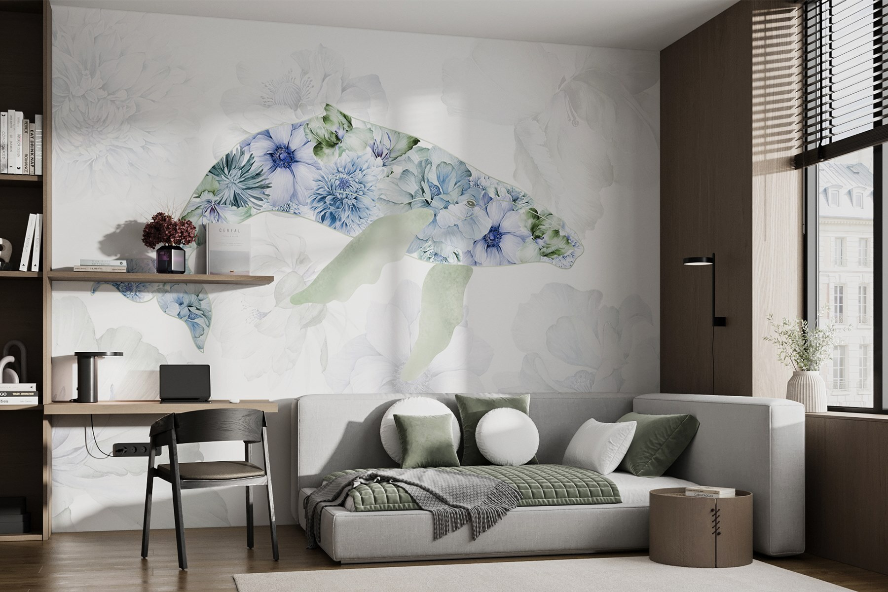 Proměňte svůj prostor pomocí této okouzlující nástěnné malby s velrybou, která se hemží hravými květinami. Představte si, že vstoupíte do místnosti a okamžitě pocítíte klid moře a rozmarnost zahrady. Jemné odstíny a křehké okvětní lístky vybízejí k jemné, klidné atmosféře, která je ideální pro útulný čtecí koutek nebo i hravý dětský pokoj. Je to jako mít kousek přírody přímo na zdi, zachycující radost ze života v oceánu a květinovou krásu. Jen si představte, jak ho přátelé obdivují a ptají se, kde jste takový skvost našli. Ponořte se do toho a nechte nástěnnou malbu vdechnout vašim stěnám život!