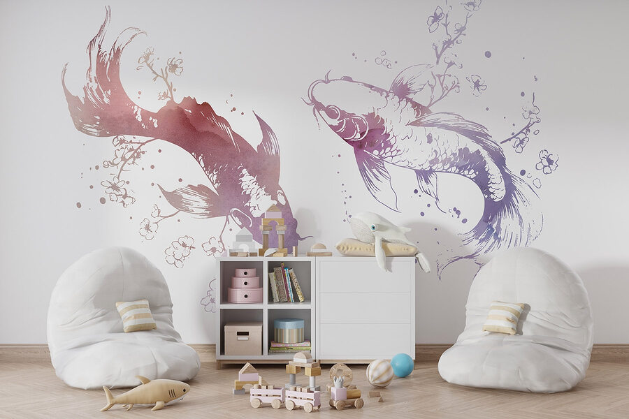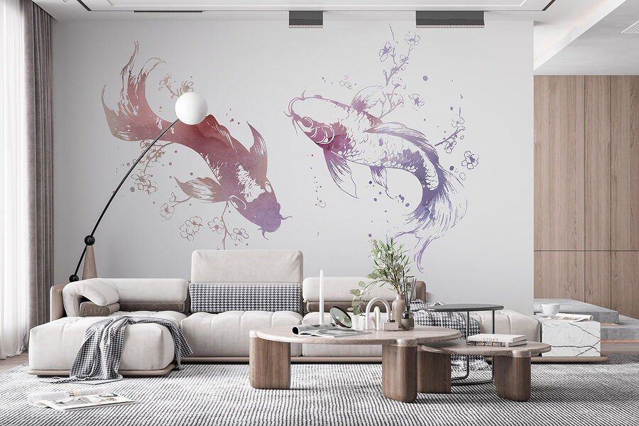 Proměňte svůj prostor ve vodní říši divů s touto okouzlující nástěnnou malbou se dvěma ladnými rybami, které plavou mezi jemnými květy a vířícími listy. Představte si, že vstoupíte do klidného podmořského světa, kde umění tančí na vašich stěnách a navozuje klid a kreativitu. Akvarelový styl této nástěnné malby jí dodává rozmarný nádech, takže se skvěle hodí do útulného čtecího koutku nebo do bezstarostného obývacího prostoru s plážovou tématikou. Představte si, jak popíjíte čaj, zatímco ryby jako by jemně klouzaly kolem a vnášely přírodu přímo do vašeho domova. Je to jako vaše osobní oáza, bez mokrých nohou a mořských řas!