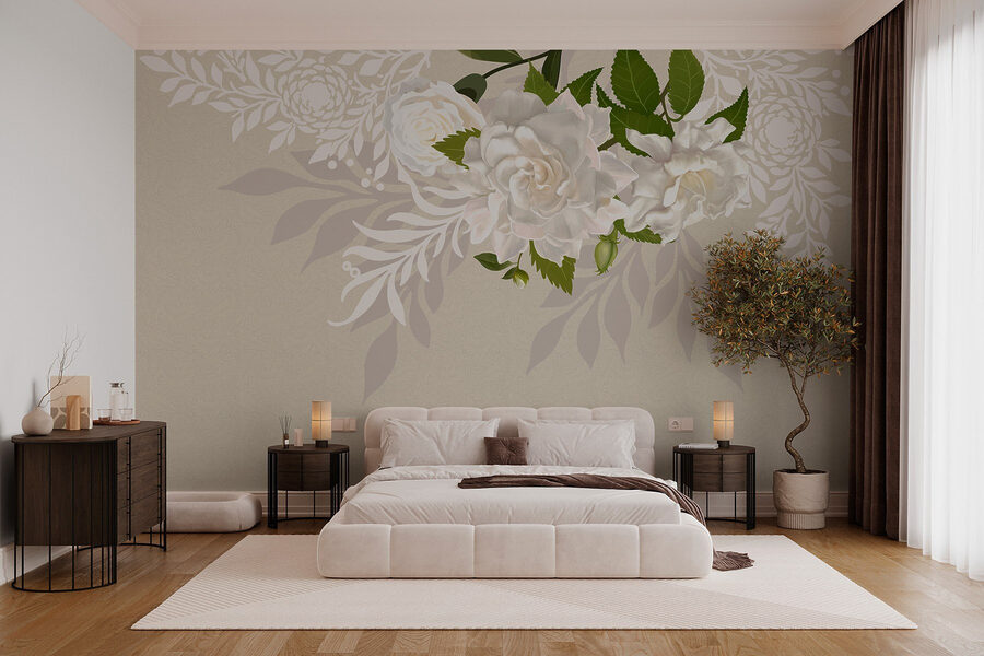 Proměňte svůj prostor v nádherný nádech přírody prostřednictvím této “Fototapety na zeď Bílé květy se zelenými listy”. Představte si, že vstoupíte do místnosti, kde vás něžné bílé květy a svěží zelené listy vítají jako starý přítel. Jemné barvy tančí na stěně a nabízejí klidné útočiště před denním shonem. Ať už zdobí útulný obývací pokoj nebo klidnou ložnici, tato nástěnná malba dodá dotek elegance a tepla. Je to jako přenést tajnou zahradu dovnitř. Navíc je to skvělý začátek konverzace – kdo by si nechtěl povídat o květinách? Přijměte do svého domova kousek přírody!