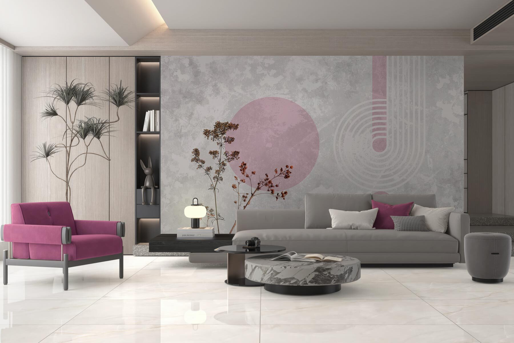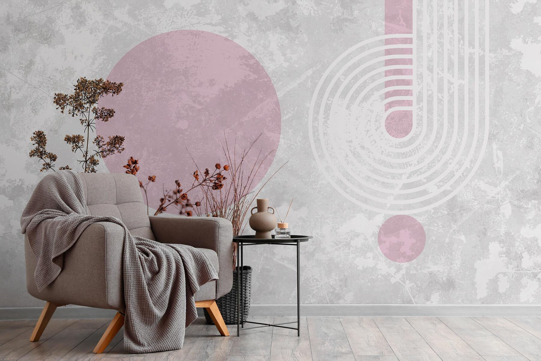 Proměňte obyčejnou stěnu ve stylové prohlášení pomocí této nástěnné malby s rostlinami s hnědými listy a hravými fialovými kruhy. Představte si to: popíjíte ranní kávu obklopeni přívalem tepla a rozmarů. Zemité tóny přinášejí útulnou atmosféru, zatímco tyto živé kruhy dodávají dostatek šmrncu, aby se každý prostor cítil jako živý. Je to jako pozvat si do interiéru kousek přírody bez nutnosti údržby – není třeba zalévat! Hosté si zamilují nečekanou atmosféru, a kdo ví, možná to jen vyvolá skvělé rozhovory. Tato nástěnná malba je ideální pro kout, který potřebuje trochu lásky, a představuje nádherný způsob, jak vyjádřit jedinečný styl.