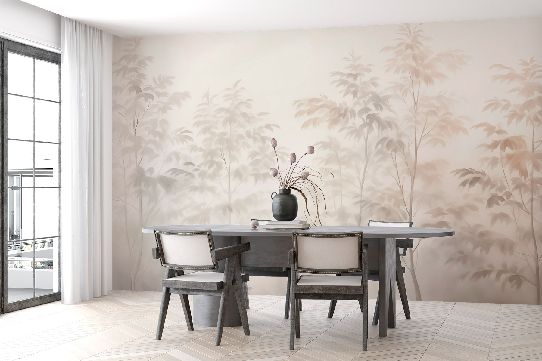 Proměňte místnost ve snový únik s nástěnnou malbou Stromy v mlze. Představte si, že se probudíte do poklidné lesní scény, kde měkké siluety stromů jemně splývají v tajemné mlze. Je to jako mít kousek přírody přímo na stěnách, který vybízí ke klidným vibracím a možná i k šálku kávy nebo čaje v ruce. Ideální pro klidné chvíle, kdy se chcete jen nadechnout. Ať už se jedná o útulný čtecí koutek nebo klidnou ložnici, tato nástěnná malba dodá šepot klidu. Jako by se vaše stěna rozhodla projít se v mlze – komu by se to nelíbilo?