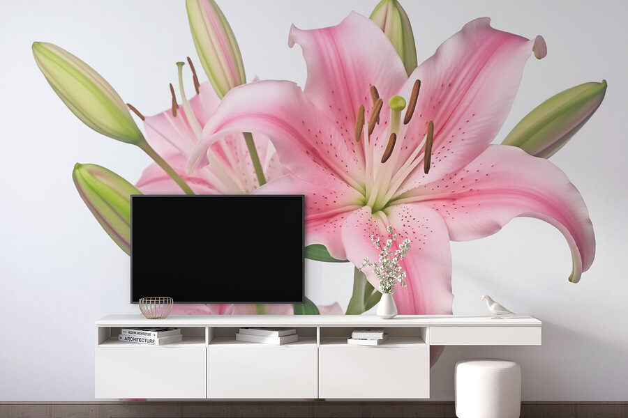 Proměňte svůj prostor pomocí nádherné nástěnné malby “Růžová lilie s poupaty”. Představte si, že vejdete do místnosti, která působí svěže a živě a každý okvětní lístek šeptá příběhy jara. Jemné růžové odstíny přinášejí jemné teplo, které je ideální pro rozjasnění útulného koutu nebo odvážné vyjádření na akcentní stěně. Je to jako mít zahradu snů přímo u vás doma, bez kýchání a zalévání. Přátelé se možná dokonce budou divit, jak jste se stali tak uměleckými! Ať už se jedná o klidné útočiště nebo živé místo setkávání, tato nástěnná malba dodá šmrnc a kdo by neměl rád trochu květinového kouzla?