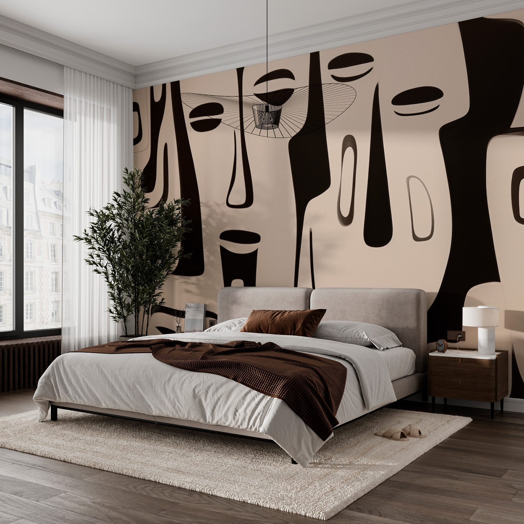 Proměňte jakoukoli místnost pomocí této výrazné černobílé nástěnné malby obličeje. Je to jako začátek konverzace, přímo na vaší zdi! Představte si, jak hostíte přátele a všichni se rozplývají v hlubokých rozhovorech, zatímco obdivují tyto odvážné tvary a tajemné výrazy. Tato nástěnná malba přináší pocit moderního umění, které naznačuje nevyřčené příběhy – je uklidňující a povzbuzující zároveň. Představte si, že vejdete do svého prostoru a pokaždé ucítíte tu malou jiskru inspirace. Je to dokonalá kulisa pro útulné večery nebo živá setkání, která bez námahy spojuje styl a osobitost. Dopřejte těmto stěnám příběh, který si zaslouží!