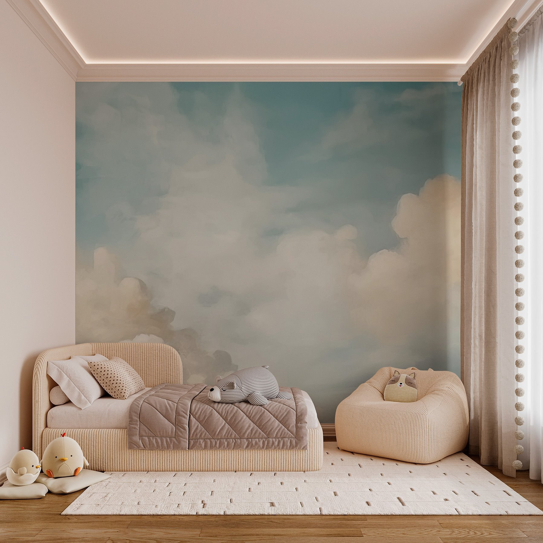 Proměňte svůj prostor pomocí této úžasné nástěnné malby “Mraky na obloze”. Představte si ji teď – měkké, nadýchané mraky líně plující po jasně modré obloze. Je to jako přenést si kousek klidného venkovního prostředí přímo do svého pokoje. Tato nástěnná malba je ideální pro útulný čtecí koutek nebo živou hernu a vybízí ke snění a nekonečným dobrodružstvím. Představte si děti, jak se dívají vzhůru a představují si tvary, nebo vás, jak si jen užíváte klidné chvíle s šálkem kávy. Vyvažuje klid s rozmarností, takže je ideální pro každého, kdo chce ve svém životě trochu kouzla. Stačí se jen usmívat, když se na něj podíváte! Dokonale útulný, bez námahy okouzlující – co si nezamilovat?