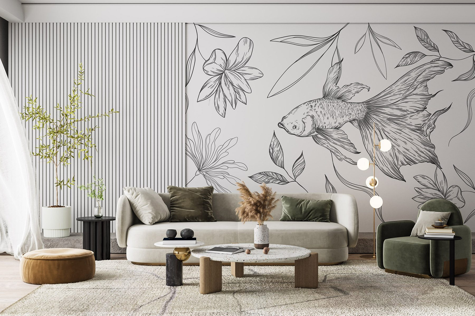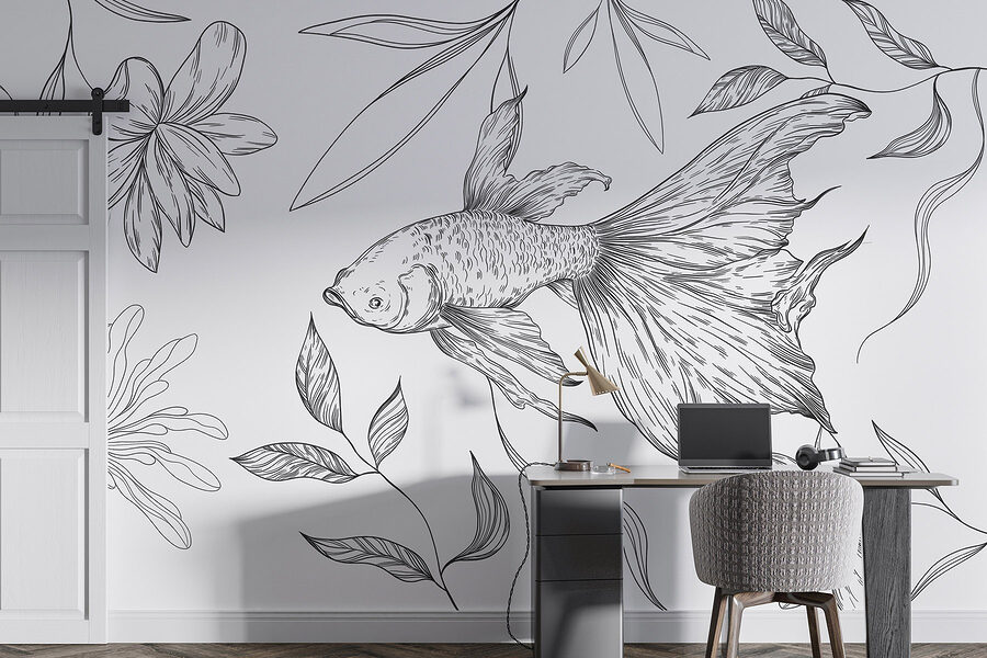 Proměňte jakýkoli prostor pomocí této úchvatné nástěnné malby s okouzlující rybou klouzající mezi křehkými rostlinami. Černobílý design přináší jedinečný vkus a dodává místnosti nádech elegance, aniž by ji zahltil. Představte si, jak popíjíte kávu, jemné linie tančí na stěně a vyvolávají uklidňující myšlenky a kreativní nápady. Je to jako šepot přírody, který zve ke klidu do vašeho shonu. Ideální pro každého, kdo chce své stěny potřísnit uměleckým kouzlem, a navíc je to i podnět ke konverzaci. Kdo by si nechtěl povídat o “kamarádovi na plavání” na své zdi?