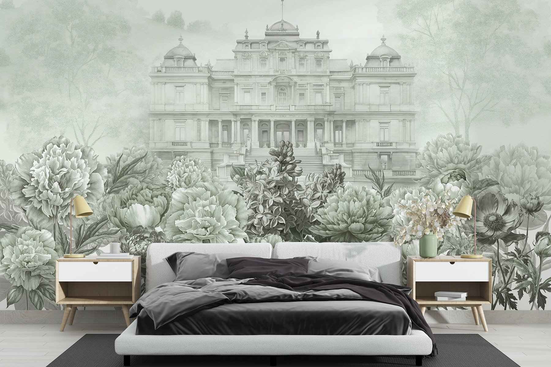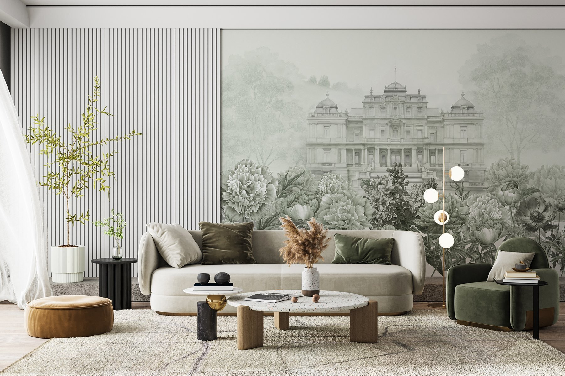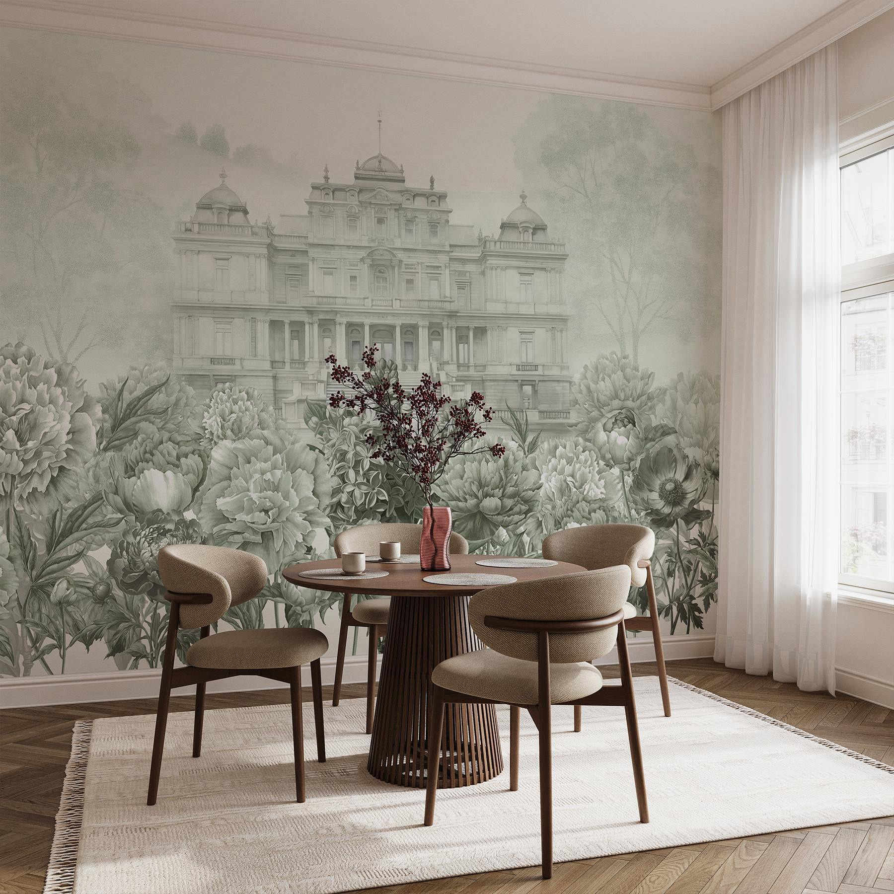 Proměňte jakýkoli prostor pomocí této úžasné nástěnné malby s velkolepou bílou budovou a živými květinami. Představte si, že vejdete do místnosti a přivítá vás nádherná exploze pivoněk, zatímco majestátní pozadí tiše poutá pozornost. Je to jako přenést do interiéru kus klidného zahradního kouzla. Tato nástěnná malba je ideální pro ty, kteří mají rádi trochu elegance smíšené s kouzlem přírody, a může tak udávat uklidňující tón nebo vyvolávat radostné rozhovory. Jen si představte přátele, kteří při popíjení čaje obdivují detaily, nebo útulný filmový večer, který se cítí o něco výjimečnější. Dokonalá tečka na závěr pro každý stylově rozkvetlý domov.