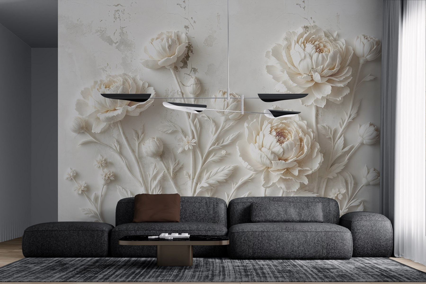 Proměna prostoru není snazší než s touto krásnou fototapetou s úžasným designem bílých květin. Představte si, že se probouzíte s jemnými pivoňkami, které oplývají šarmem a elegancí. Je to jako přenést zahradu do interiéru bez otravné údržby. Jemný reliéf a složité detaily vytvářejí klidnou atmosféru, ideální pro odpočinek po dlouhém dni. Vaši přátelé si budou myslet, že jste si najali nóbl umělce, ale bude to jen vaše malé tajemství. Ať už se nachází v útulném koutě nebo ve světlé chodbě, tato nástěnná malba našeptává sofistikovanost – není třeba pořádat čajový dýchánek, ale rozhodně na něj navozuje náladu!