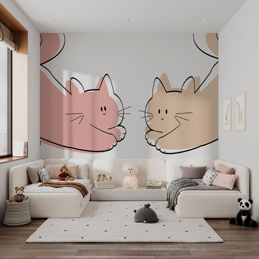 Proměňte svůj prostor pomocí této nádherné nástěnné malby s dvojicí útulných koček, které se jen tak chillují. Jsou to kamarádi, které byste si přáli mít u sebe na lenošení v neděli odpoledne. Představte si ji v dětském pokoji nebo v hravém koutku doma – okamžitý úsměv zaručen! Jemné barvy a náladový design vzbuzují pocity tepla a pohodlí, takže je těžké se na ně nepodívat. Je ideální pro přidání nádechu kouzla, aniž by zahltil atmosféru. Kdo by neměl rád každodenní připomínku těchto roztomilých chlupáčů? Jen si představte příběhy, které by mohly ožít s těmito rozmarnými kočičkami!