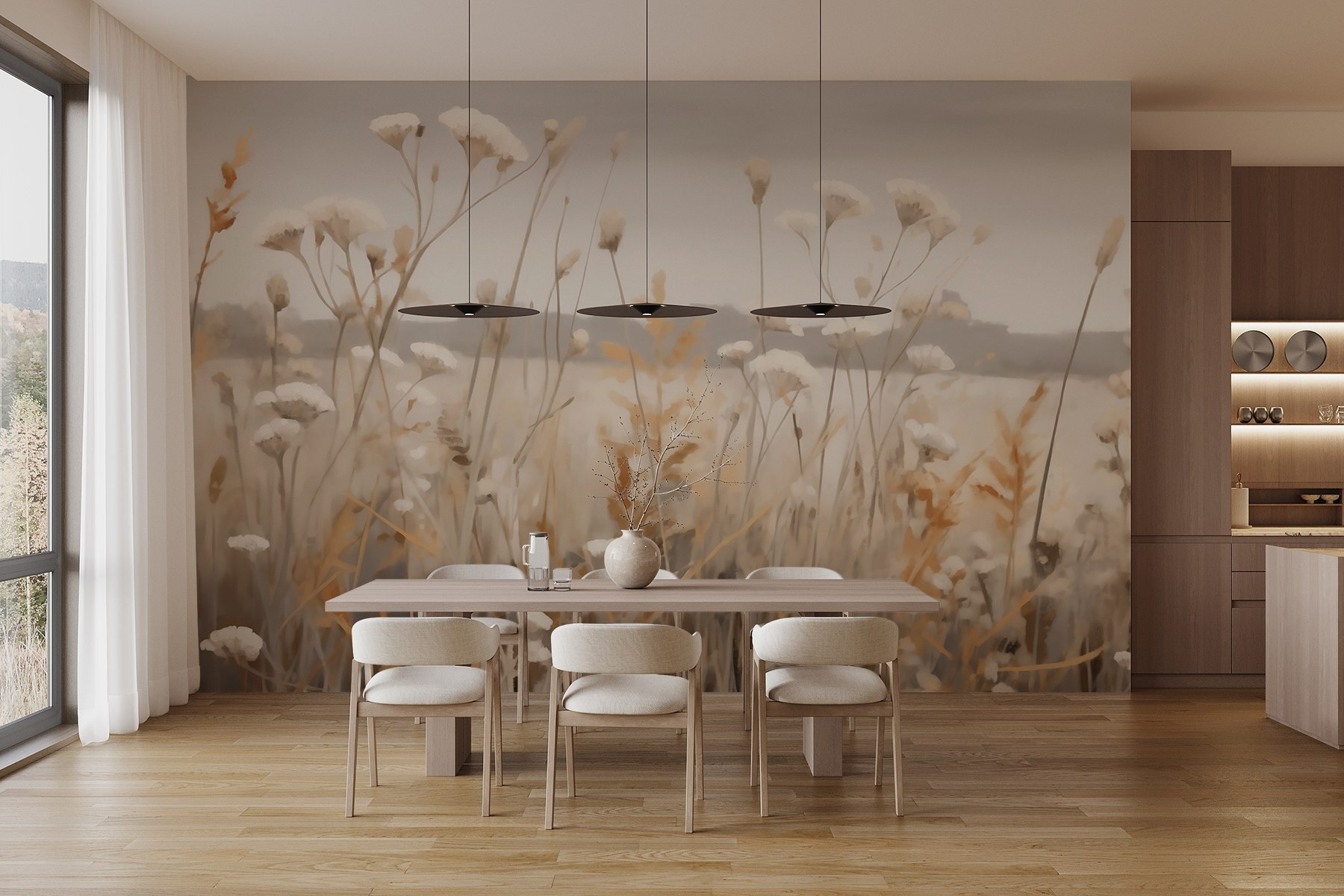 Proměňte každou místnost v útulné útočiště pomocí této okouzlující nástěnné malby “Pole květin a trávy”. Představte si, že se probudíte na klidném poli, kde se divoké květiny jemně pohupují ve větru. Jemné odstíny zvou do interiéru dotek přírody a poskytují uklidňující kulisu každodennímu životu. Tato nástěnná malba, která je ideální do obývacího pokoje nebo klidné pracovny, přináší pocit klidu a tepla; je to jako mít miniaturní útěk přímo na zdi. Představte si, jak popíjíte čaj nebo si vychutnáváte dobrou knihu obklopeni touto krásnou scenérií – mluvte o okamžitých relaxačních vibracích!