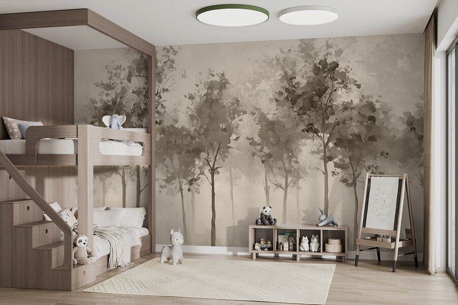 S touto okouzlující fototapetou se stromy zahalenými v jemné mlze proměníte každou místnost v klidný únik. Představte si, jak popíjíte ranní kávu a ztrácíte se v klidných, tlumených tónech, které jako by šeptaly sladké tóny přírody. Je to jako přenést si klidný les přímo do svého obytného prostoru. Tato nástěnná malba není jen dekorací, ale i zlepšovačem nálady. Je ideální pro ty, kteří chtějí mít doma nádech klidu bez všeho toho listí a zvířátek. Navíc, kdo by neměl rád pocit, že je tak trochu ve snovém lesním útočišti?