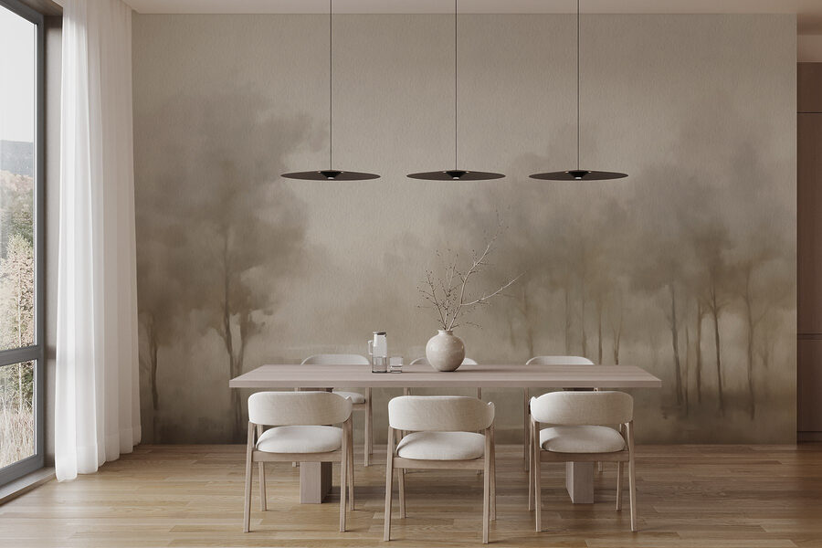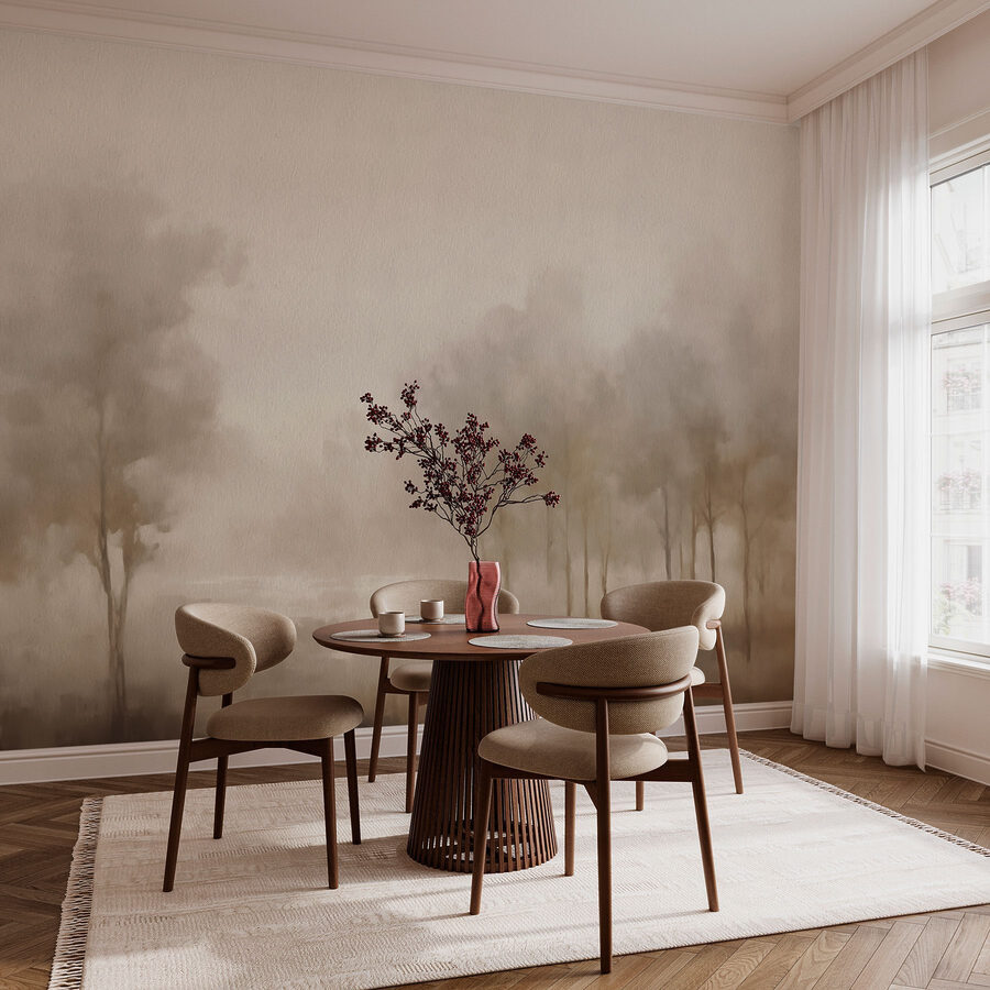 Proměňte každou místnost pomocí této zasněné nástěnné malby s mlhavou krajinou se stromy. Představte si, že se probudíte a máte pocit, že jste vstoupili do klidného mlhavého rána přímo ve svém vlastním prostoru, kde jemně šeptá krása přírody. Jemné odstíny jsou ideální pro navození klidných vibrací, ať už se jedná o útulnou ložnici nebo živý obývací prostor. Je to jako přenést si klidný les dovnitř bez hmyzu a potřeby turistických bot! Tato nástěnná malba je ideální pro milovníky přírody nebo pro všechny, kdo se honí za klidným únikem, a okouzlí vás při každém pohledu na ni. Uvelebte se a nechte mlžnou scenérii, aby obklopila váš domov jako hřejivé objetí.