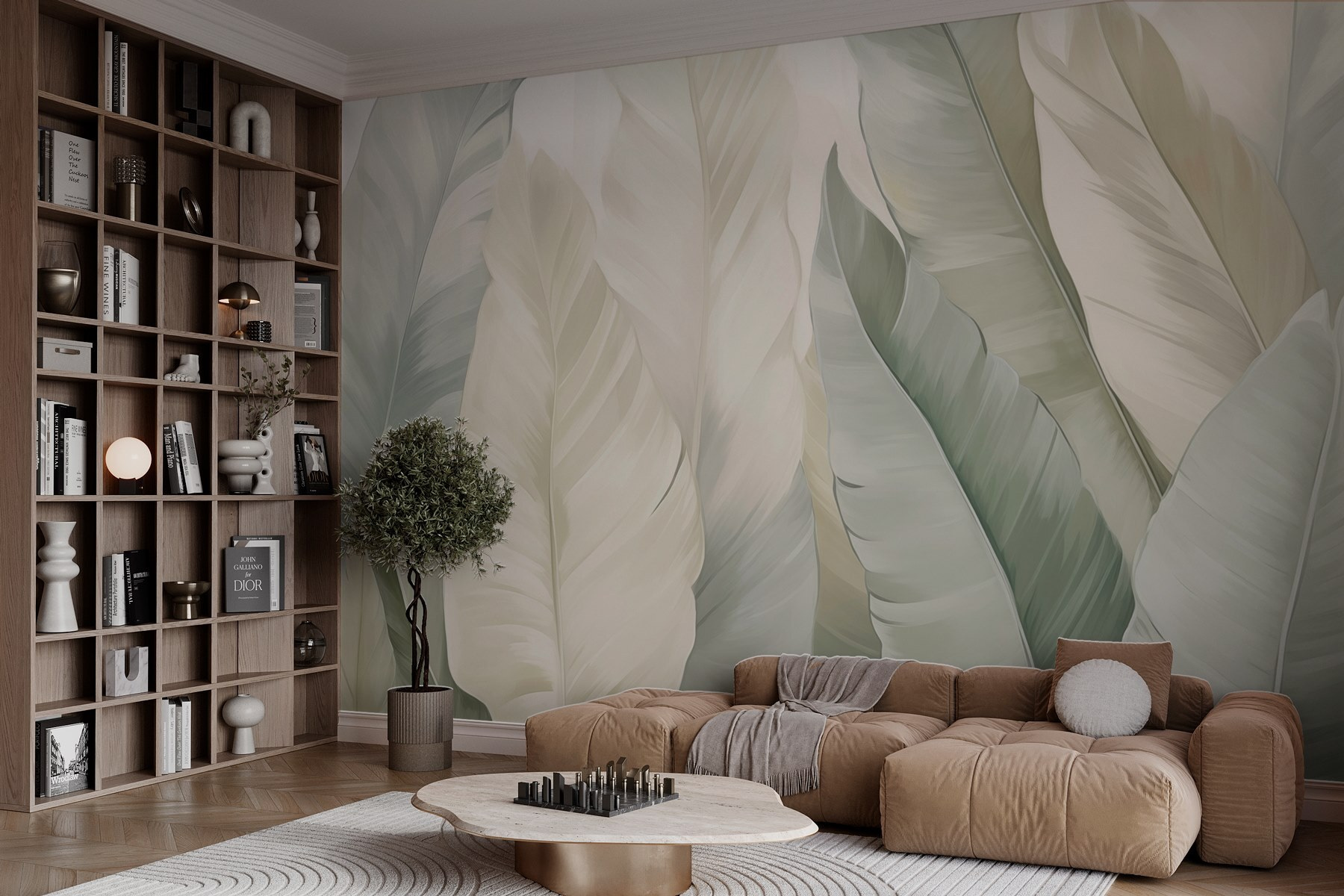 Proměňte nudnou stěnu ve svěží únik s touto fototapetou s jemnými odstíny tropických listů. Představte si, že při každém vstupu do místnosti vstoupíte do své oblíbené oázy. Jemná zelená a krémová vytvářejí relaxační atmosféru – ideální pro dlouhé pracovní dny, kdy potřebujete jen trochu doteku přírody. Je to jako přenést si kousek džungle do interiéru, aniž byste se museli starat o zalévání rostlin nebo otravný hmyz. Přátelé se možná začnou ptát na vaše tajemství klidného domova! S každým pohledem očekávejte, že vás zaplaví klid, který vám připomene líné letní dny a chladivý vánek. Není to jen nástěnná malba, je to atmosféra!