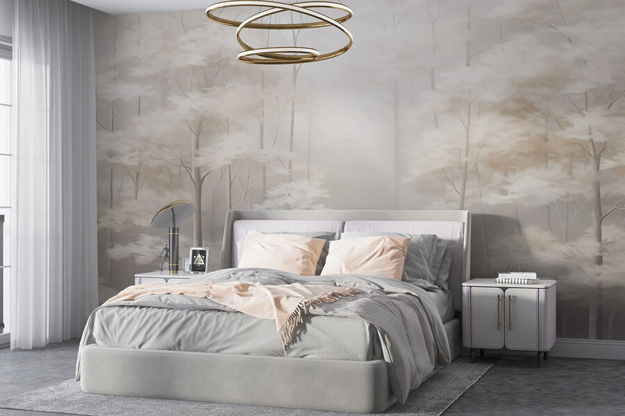 Představte si, že vstoupíte do zasněného mlžného lesa, kde vás jemné tóny a laskavé stromy vybízejí k toulkám. Tato nástěnná malba je pro váš prostor jako závan čerstvého vzduchu – dokonalá kombinace klidu přírody a moderního umění. Představte si útulné večery strávené v místnosti proměněné touto klidnou kulisou. Není to jen nástěnná malba, je to nálada. Ať už popíjíte kávu, nebo pracujete na svém nejnovějším projektu, tento uklidňující výjev slibuje uklidnění mysli a podnícení inspirace. Navíc je to skvělý začátek konverzace pro všechny vaše hosty. Kdo by si rád nepopovídal o krásách přírody z pohodlí domova?