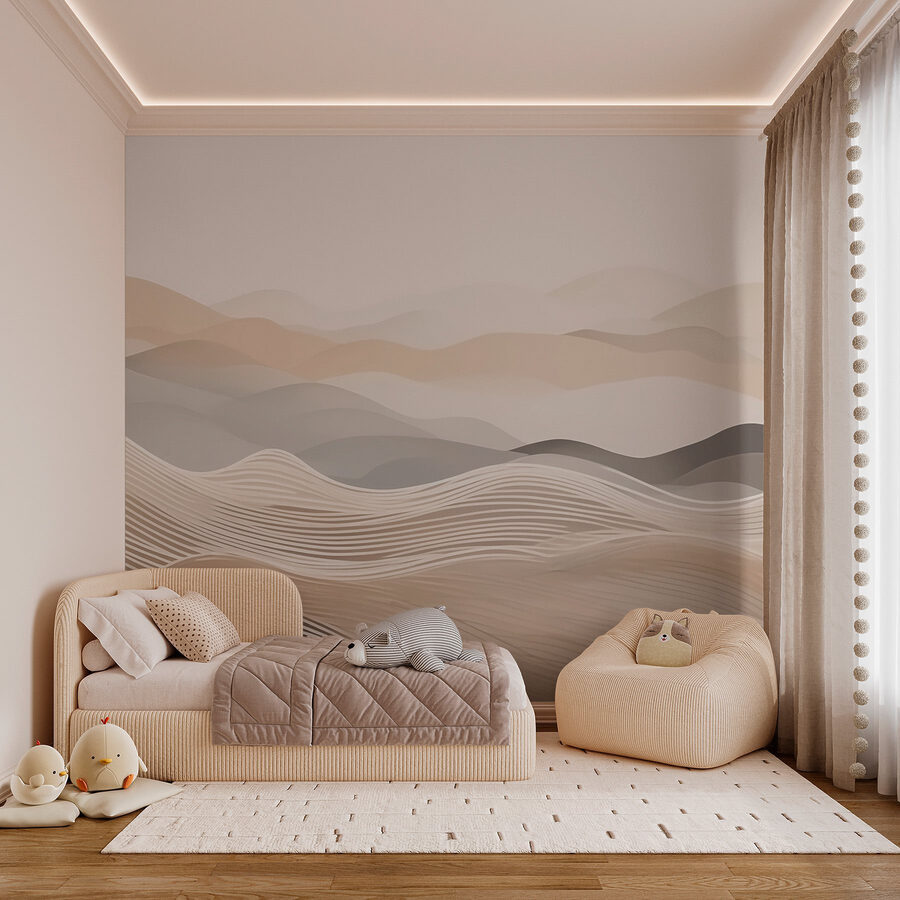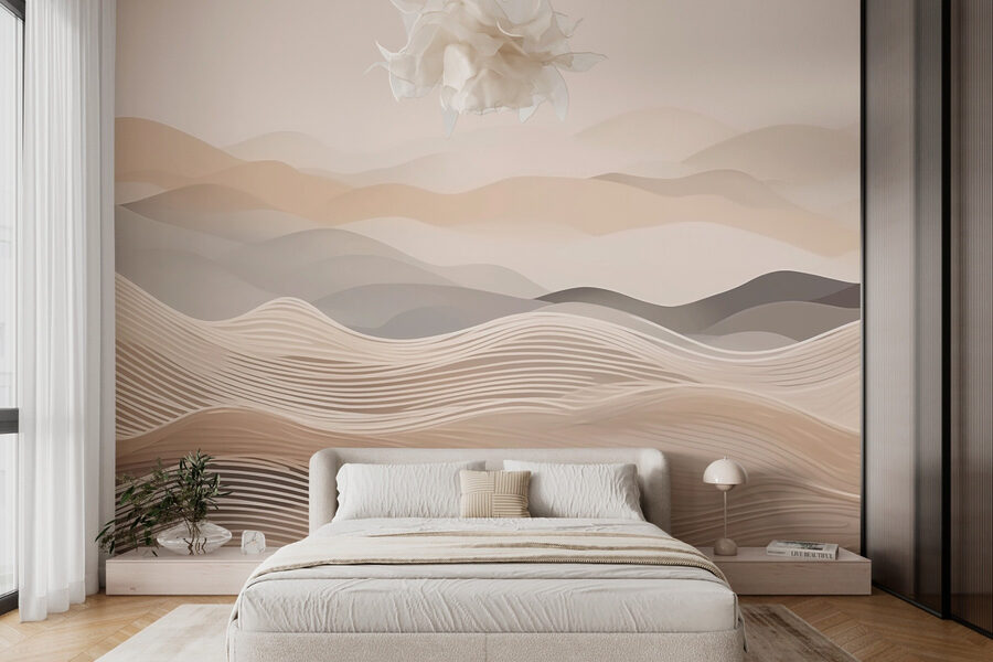Proměňte jakoukoli stěnu v útulné útočiště pomocí této nástěnné malby zobrazující mírné kopce v jemných vlnách bílé a hnědé barvy. Je to jako přenést kousek přírody přímo do srdce vašeho domova. Představte si, že se při pohledu na tyto uklidňující křivky schoulíte do klubíčka s dobrou knihou nebo jen tak popíjíte kávu. Skoro se zdá, že se vlní jako klidné moře – ideální pro vytvoření klidné atmosféry. Jemné tóny této nástěnné malby se krásně hodí k jakémukoli interiéru, takže je fantastickým pozadím pro vaše dobrodružství v interiérovém designu. Jde o to najít rovnováhu mezi pohodlím a stylem, nemyslíte? Přidejte do svého prostoru nádech klidu; koneckonců, kdo by nechtěl, aby se jeho domov cítil jako vřelé objetí?