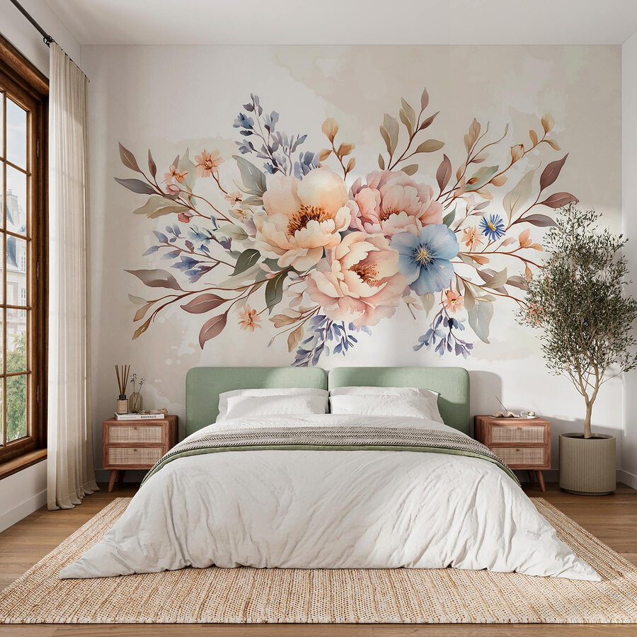 Proměňte svůj prostor pomocí této úžasné nástěnné malby s kyticí květin na jemném bílém pozadí. Je to jako mít zahradu přímo ve svém obývacím pokoji – bez nutnosti údržby. Představte si, že vejdete do místnosti a přivítají vás křehké pivoňky a jemné odstíny, které vám zvednou náladu. Tato nástěnná malba jiskří radostí a vybízí k vřelosti a vytváří dokonalé pozadí pro útulná setkání nebo klidné chvíle s knihou. Navíc je to snadný způsob, jak přidat barevný nádech, aniž byste museli počítat s živými rostlinami. Je to květinové kouzlo, přesně tam, kde ho potřebujete!