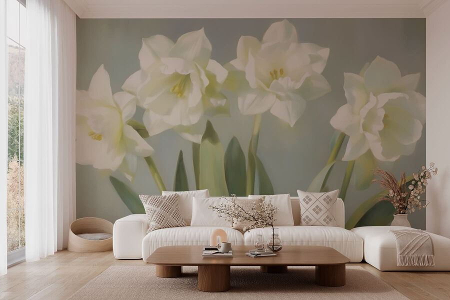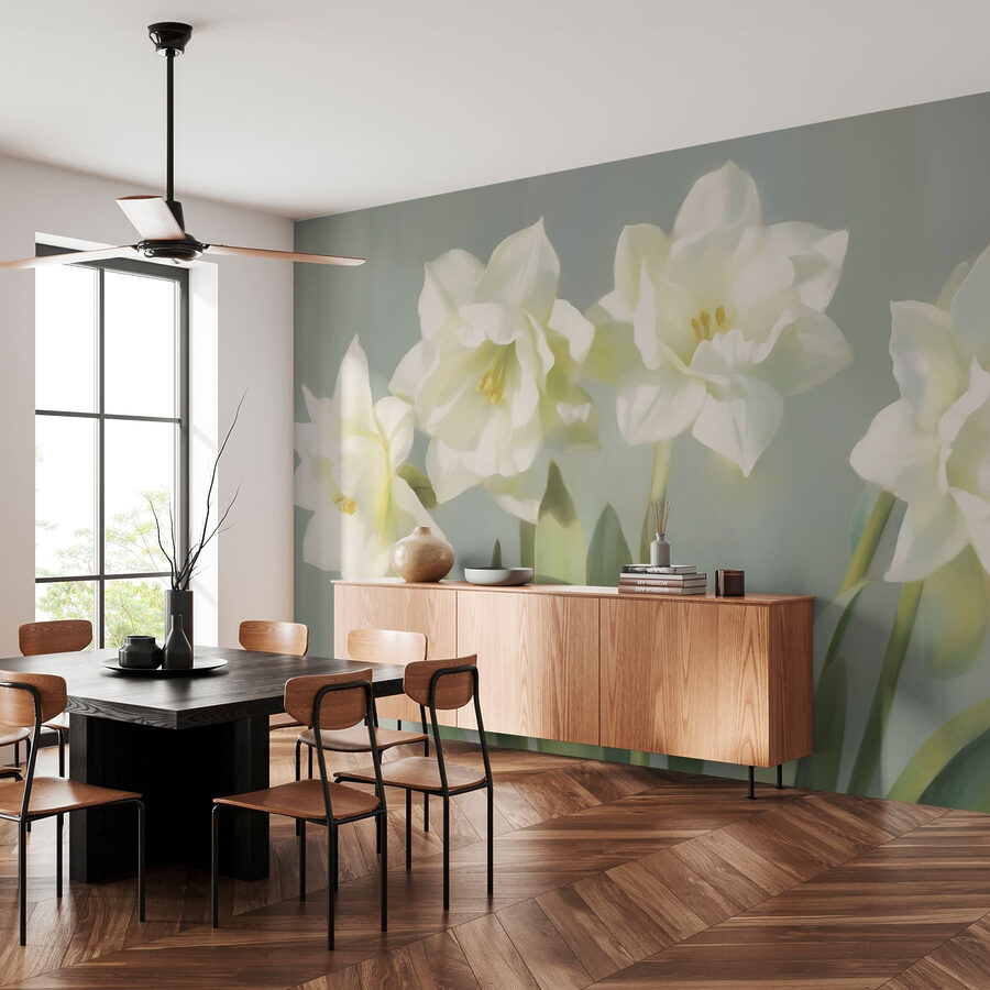 Proměňte svůj prostor pomocí této okouzlující nástěnné malby se skupinou jemných bílých květů. Představte si, že vejdete do místnosti plné jemného kouzla, díky kterému budete mít pocit, že jste vstoupili do klidné zahrady. Jemné barvy tančí jako šepot a vytvářejí atmosféru, která je uklidňující a osvěžující zároveň. Skvěle se hodí do útulného čtecího koutku nebo do světlého, vzdušného obývacího pokoje a dodá mu nádech tepla, kterému je těžké odolat. Vaši hosté se při pohledu na něj možná zastaví a budou přemýšlet, jestli se jim to nezdá. Krásný způsob, jak do svého života propašovat trochu přírody, aniž byste potřebovali zelený palec!