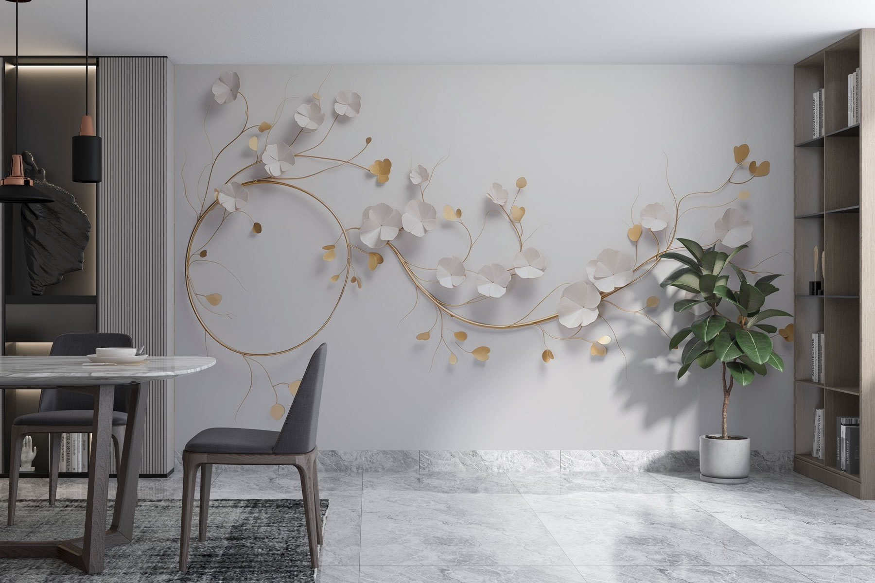 Proměňte každou místnost pomocí této úžasné nástěnné malby s jemným květinovým aranžmá, které působí jako jemný vánek v teplém dni. Představte si jemné květy táhnoucí se po stěně, které pozvou dotek přírody přímo k vám domů. Je to design, který by dokázal vykouzlit úsměv na tváři i té nejmrzutější pokojové rostlině. Představte si, že se probudíte a při popíjení ranní kávy se budete cítit povzneseně, obklopeni těmito okouzlujícími květy. Nejsou jen dekorací, jsou okamžikem radosti pokaždé, když se na ně podíváte. Tato nástěnná malba je ideální pro vytvoření klidného útočiště a je vaší vstupenkou do malého kousku květinového ráje.