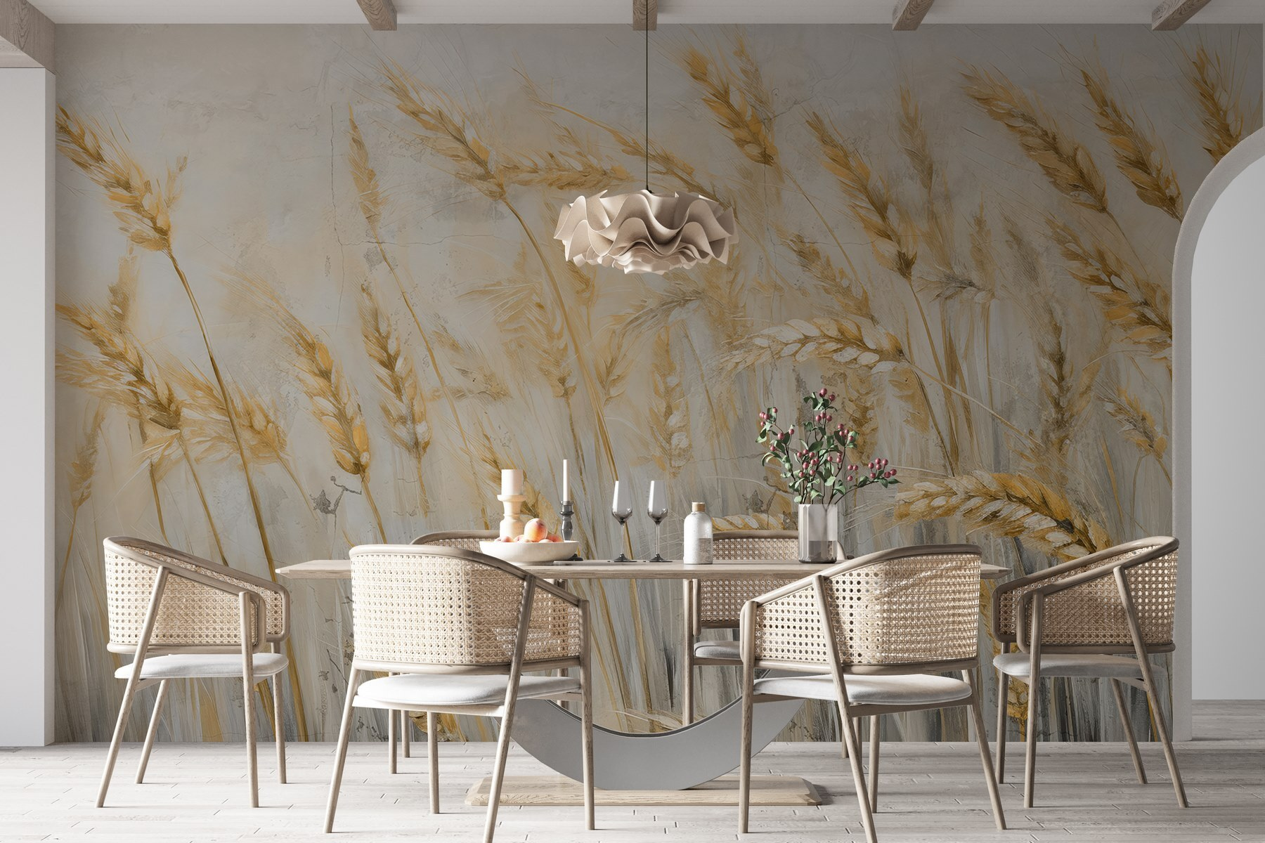 Proměňte svůj prostor pomocí úžasné nástěnné malby, která zachycuje pšeničné pole jemně se pohupující ve větru. Tento kousek dodává dotek krásy přírody a vnáší do každé místnosti hřejivou, zemitou atmosféru. Představte si, že popíjíte ranní kávu a máte pocit, že stojíte na nekonečném zlatém poli a slunce vás líbá na tváře. Je to ten typ nástěnné malby, která oživuje stěny a vyvolává sny o piknicích a líných odpoledních. Tato nástěnná malba, která se skvěle hodí do útulného obývacího pokoje nebo klidné ložnice, navozuje pocit klidu a radosti a každému připomíná, že příroda je vzdálená pouhým pohledem.