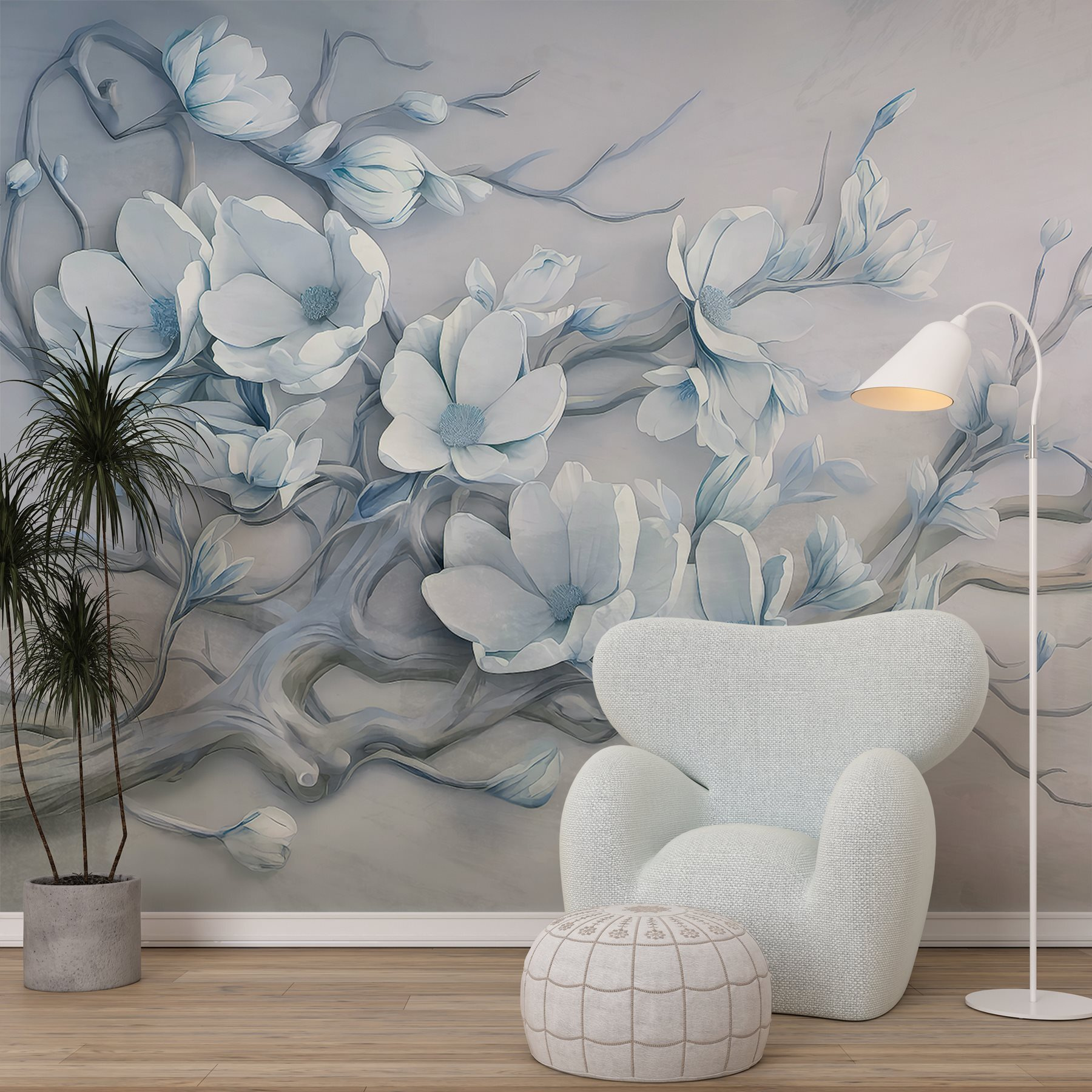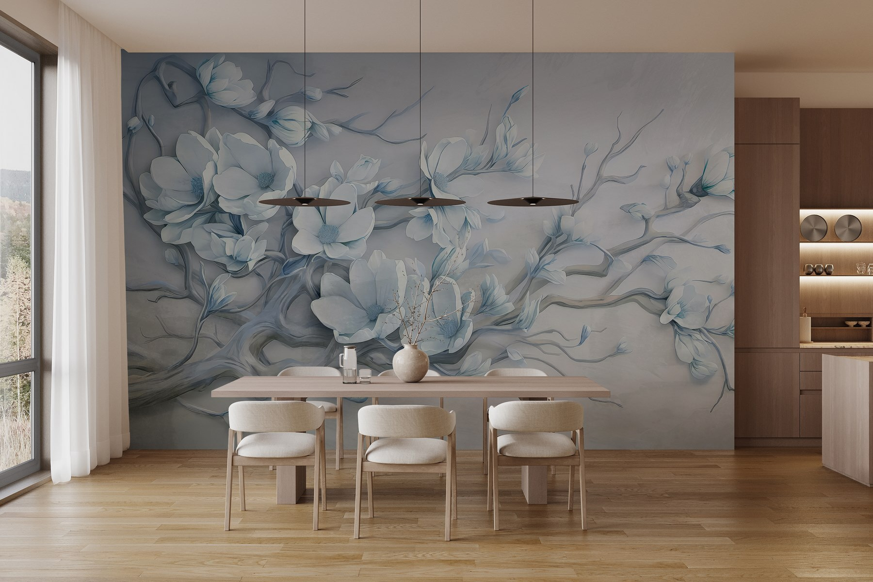 Proměňte svůj prostor pomocí této okouzlující nástěnné malby s jemnými bílými květy na větvi. Je to, jako byste přinesli jemný jarní vánek přímo do svého domova. Uklidňující odstíny a jemné linie vytvářejí uklidňující atmosféru – ideální pro útulný čtecí koutek nebo klidnou ložnici. Představte si, jak při pohledu na tyto květy popíjíte čaj a cítíte, jak se stres z celého dne rozplývá. Každý pohled je jako mini útěk do klidné zahrady. Není to jen dekorace, je to zážitek, který do každé místnosti vnese teplo a eleganci. Je také skutečným začátkem konverzace – možná se vám podaří najít přátele, kteří ji budou obdivovat stejně jako vy!