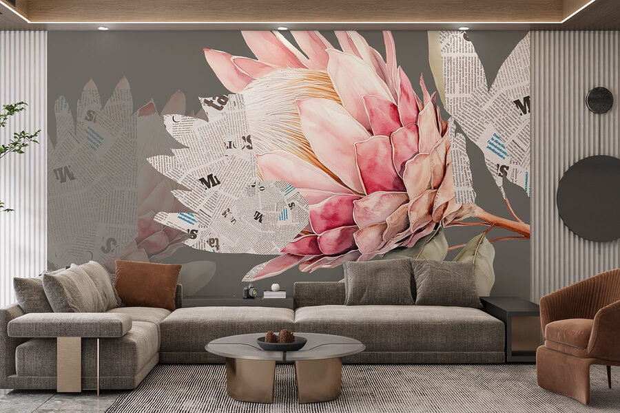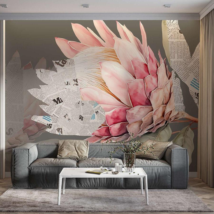 Proměňte každou místnost pomocí této okouzlující nástěnné malby s úžasnou květinou obklopenou náladovými listy a útržky novin. Jako by si příroda a kreativita rozkošnicky popovídaly a rozhodly se trochu zatřást. Představte si, že vejdete do svého prostoru a přivítají vás živé okvětní lístky, které jako by vyskakovaly přímo ze zdi a vyzývaly vás, abyste se zastavili a nasáli tu krásu. Tato nástěnná malba dodává svěží vánek šarmu a charakteru, takže je dokonalou kulisou pro útulná rána u kávy nebo inspirativní večery plné smíchu. Každý se bude cítit povzneseně, jen když bude v její blízkosti, jako by každý pohled přinášel do interiéru kousek slunce. Není to jen dekorace, je to nálada!