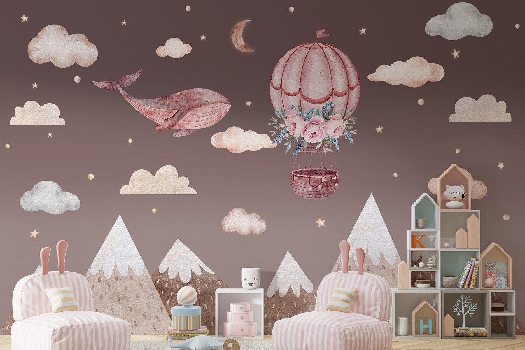 S touto rozmarnou fototapetou s okouzlující velrybou a horkovzdušným balónem plujícím po pastelové obloze proměníte každou místnost ve snový únik. Představte si, že popíjíte kávu a díváte se přitom na hravou velrybu – vážně, kdo by řekl, že vodní tvorové mohou flirtovat s mraky? Uklidňující barvy vytvářejí atmosféru, která působí uvolněně a inspirativně. Tato nástěnná malba je ideální do dětského pokoje nebo útulného čtecího koutku, vybízí ke snění a podporuje představivost. Jen si představte malé děti, jak se dívají vzhůru a odplouvají vstříc svým vlastním dobrodružstvím, nebo dospělé, jak vzpomínají na bezstarostné dny plné zázraků. Je to jako mini útěk na vaší zdi, který čeká na to, aby každý den vyvolal radost.