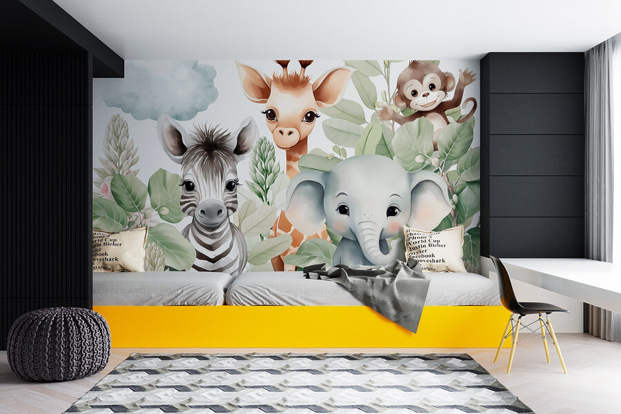S touto okouzlující fototapetou s hravými zvířátky vykukujícími z bujného listí proměníte jakýkoli prostor v živou džungli. Představte si radost na dětské tváři, když spatří přátelskou zebru, zvědavou žirafu a drzou opici – ideální do dětských pokojů nebo heren. Tato nástěnná malba vybízí k hřejivosti a rozmarnosti a přináší venkovní prostředí dovnitř. Je to, jako by vám na zdi skotačila malá zvířátka z přírody! Snadno se aplikuje a je dostatečně jasná, aby vyvolala konverzaci, a okamžitě zlepší náladu. Kdo by se nechtěl probudit s tímto veselým výjevem? Jen si představte příběhy, které zde čekají na své rozvinutí.