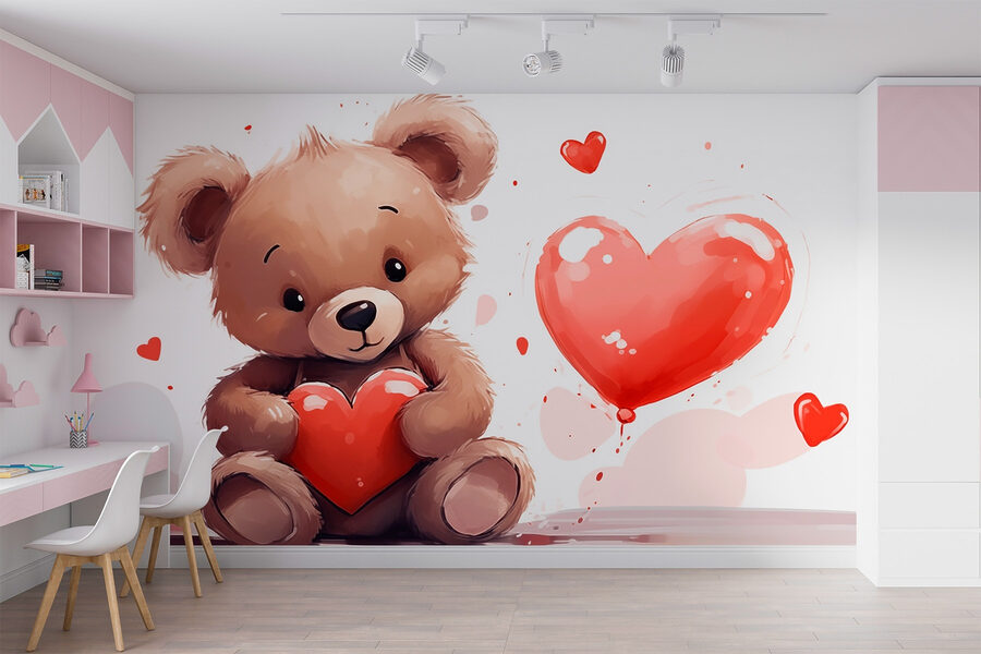 Představte si to: útulný pokoj plný smíchu a jemného šplouchání malých nožiček. Uprostřed vší té radosti je nádherná nástěnná malba medvídka, který drží srdíčko. Není to jen medvídek, je to malý chlupatý uzlíček lásky, který vykouzlí úsměv na tváři a promění každou zeď v hřejivou náruč. Děti budou mít pocit, že vstupují do zasněné říše divů pokaždé, když vstoupí do místnosti. Zářivé odstíny a hravý design podněcují představivost, takže hodiny vyprávění budou mimořádně zábavné. Jen si to představte – malé děti se tulí ve svém prostoru, prožívají medvědí dobrodružství a sdílejí tajemství se svým novým plyšovým kamarádem. Tato nástěnná malba, která se skvěle hodí do dětských pokojů nebo heren, promění obyčejnou zeď v plátno plné štěstí!