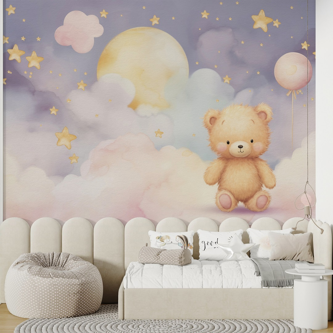 Proměňte každý dětský pokoj pomocí této okouzlující nástěnné malby s roztomilým medvídkem, který se chladí na nadýchaném obláčku. Představte si, že jejich pokoj zdobí kousek, který vyvolává chichotání a snění. Pastelové barvy tančí jako jemný šepot a působí útulně a zároveň rozmarně. Je to jako přenést si kus oblohy do interiéru, ideální pro chvíle, kdy příběhy na dobrou noc letí. Představte si radost na tváři vašeho děťátka, když spatří třpytivé hvězdy a jemný balonek plující kolem. Není to jen dekorace, je to brána do světa fantazie a sladkých snů. Tato nástěnná malba, která se skvěle hodí do dětských pokojů nebo heren, dodává teplo a kapku kouzla, takže každý pohled je důvodem k úsměvu.