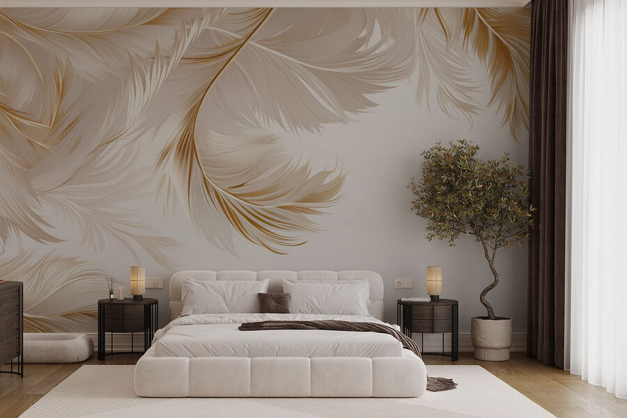 Proměňte jakýkoli prostor v útulné útočiště s nástěnnou malbou “Elegantní peří v jemných tónech”. Jen si to představte – stěna zdobená jemnými vzory peříček v teplých, příjemných odstínech. Je to jako zabalit svůj pokoj do měkké, nadýchané deky, kde každý pohled přináší pocit klidu a elegance. Představte si, že popíjíte ranní kávu a vítá vás toto krásné pozadí, které působí elegantně a zároveň klidně. Přátelé se budou ptát, kde jste takový skvost našli, a kdo by se rád nepochlubil svým jedinečným dekorem? Tato nástěnná malba, která se skvěle hodí do obývacího pokoje nebo oázy klidu v ložnici, našeptává styl, aniž by křičela. Stačí ji pověsit a nechat mluvit peří.
