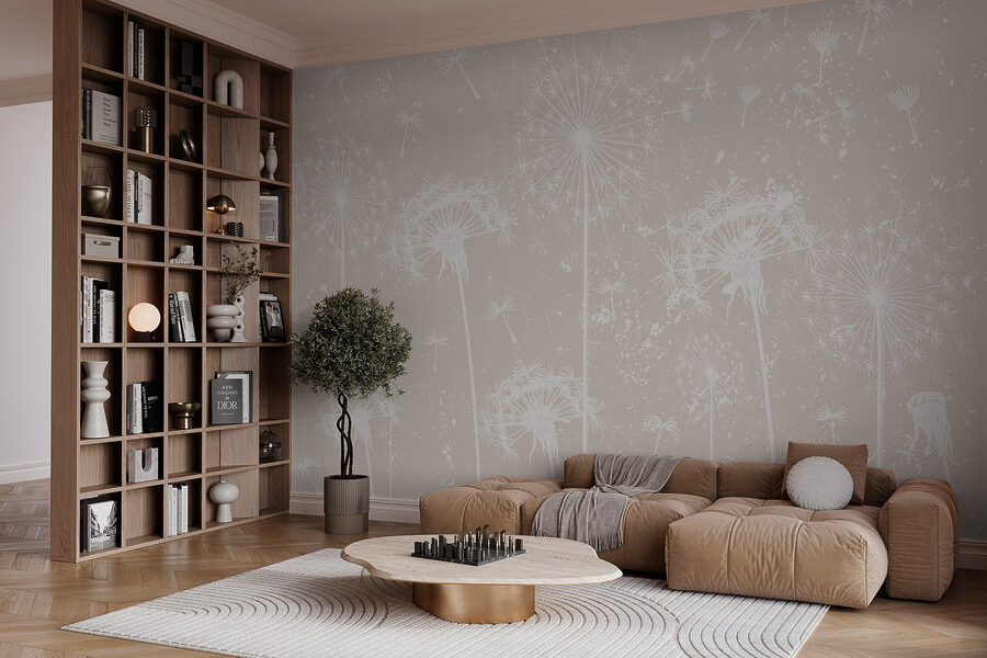 Představte si to: klidný prostor proměněný jemnou krásou bílých květů pampelišek. Tato nástěnná malba není jen dekorací; je to jako vnést do interiéru jemný vánek, který šeptá příběhy o lehkosti a snech. S těmito jemnými květy umístěnými na hřejivém pozadí je každý pohled jako malý únik do přírody.